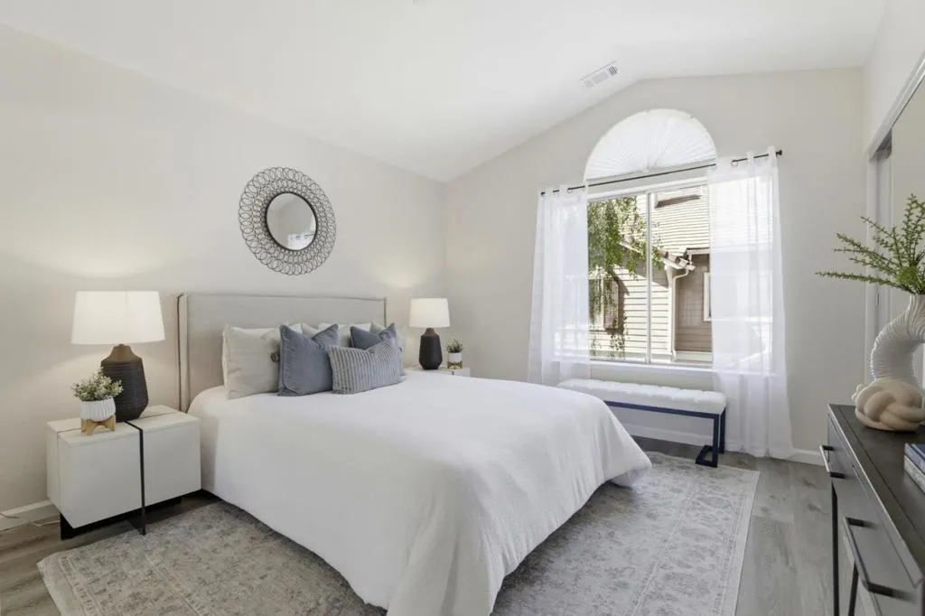 Spacious townhome with a downstairs bedroom with a full bath, perfect for guests, or a private home office. Home offers exceptional privacy and abundant natural light in the highly desirable South San Jose area. Freshly painted throughout, a spacious living room with soaring vaulted ceilings and a cozy fireplace, creating a warm and inviting atmosphere. The kitchen is equipped with sleek quartz countertops, a new gas cooktop and oven range, dishwasher, refrigerator, and a range hood. The adjacent dining area opens to a private, fenced patio, perfect for outdoor relaxation or even a vegetable garden. Additional highlights include high ceilings, Central A.C. and Heating, luxury vinyl flooring, tile, fresh paint throughout, in-unit washer and dryer for added convenience. The home also includes a one-car garage and one assigned parking space directly in front of the unit. Community amenities, including a pool, a spa, tennis courts, a basketball court, and tennis and volleyball courts, are conveniently located near Kaiser Permanente, Santa Teresa Library, Miyuki Park, Dog Park, shopping centers, private Challenger, Stratford, and public schools. With easy access to Highways 85, 87, and 101, this home offers comfort, convenience, and the lifestyle that you are looking for.