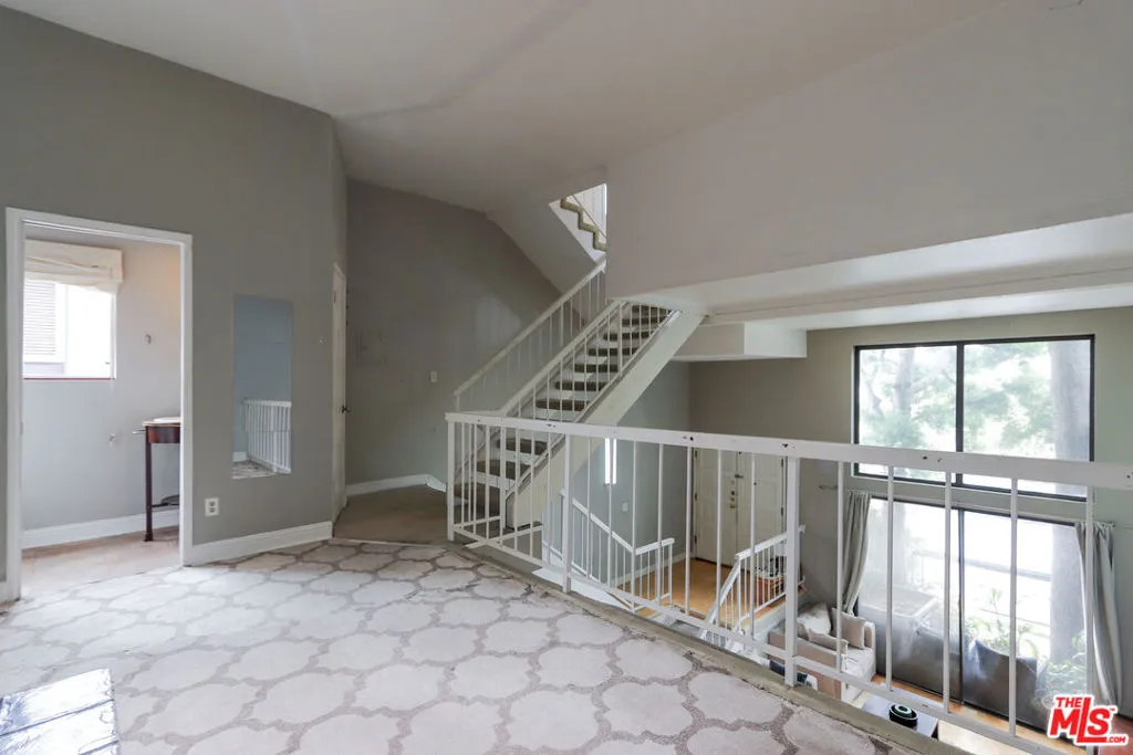 Sophisticated designed architectural 4 story Townhouse in need of TLC, on a coveted corner unit with 4 more windows than the other townhouses, creates light and bright living spaces. Views of the Getty and Sunsets from primary bedroom. The bright and airy Living Room features soaring 18-foot ceilings, and windows to match. The upstairs Den/Office, with fireplace, overlooks the spacious living room and ground floor patio. An impressive Master bedroom features high ceilings, a fireplace and loft as well as a private top floor balcony. Gated and secure side-by-side parking.