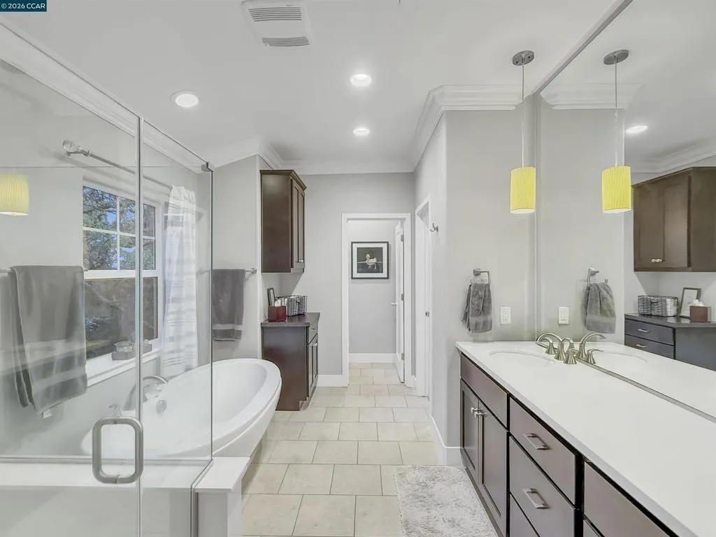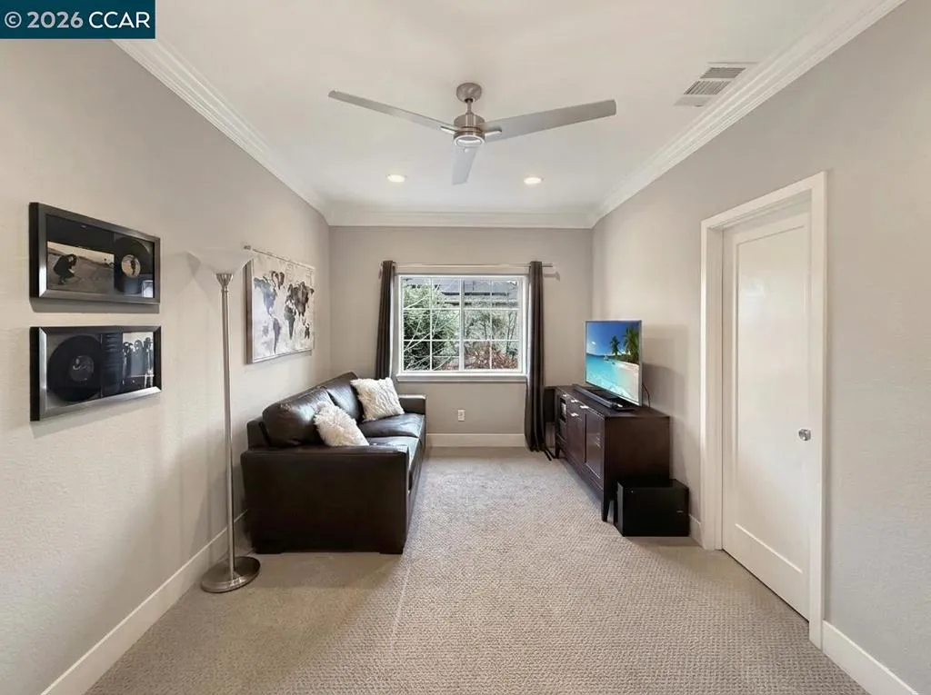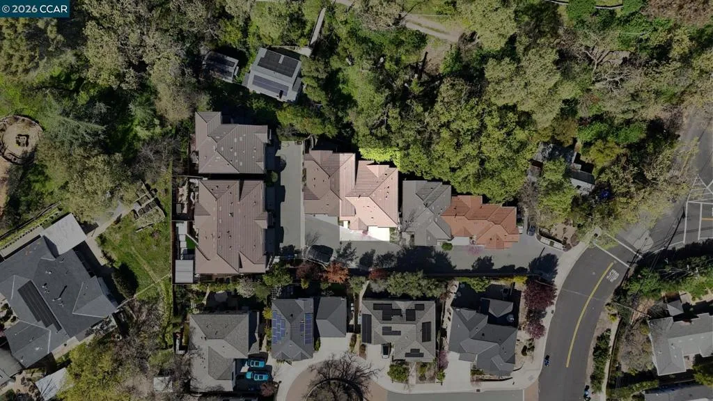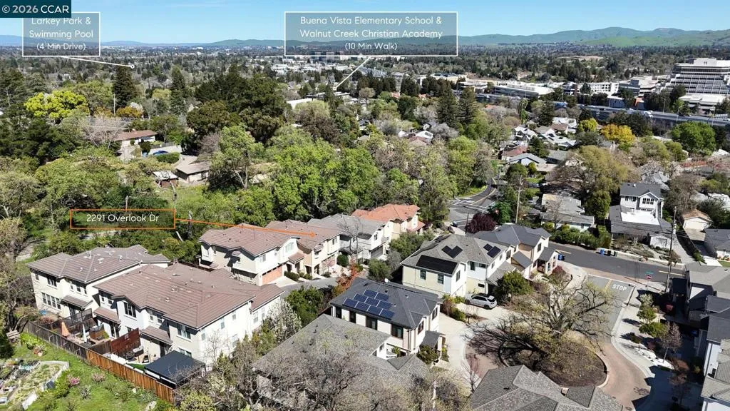 Welcome to 2291 Overlook Drive, a stunning 2015-built townhome offering contemporary design and unbeatable walkability in one of Walnut Creek's most desirable locations. Soaring ceilings, rich hardwood floors, crown molding, and recessed lighting flow throughout the open-concept main level. The living room features floor-to-ceiling built-in shelving and a gas fireplace, while the chef's kitchen shines with stainless steel appliances, quartz countertops, and a large island. Step outside to your private deck with natural gas fire pit and built-in BBQ, overlooking serene woodland where deer and local wildlife roam, a tranquil escape steps from downtown. Upstairs, three spacious bedrooms include a master suite with spa-inspired ensuite featuring a floating tub, oversized shower, and walk-in closet with California Closet system. Two additional bedrooms share a jack-and-jill bathroom, plus dedicated laundry room and built-in workstation. The two-car garage features epoxy flooring and custom cabinetry. Located steps to Walnut Creek BART and vibrant downtown dining, shopping, and entertainment. This rare combination of modern amenities, outdoor living, and prime location makes 2291 Overlook Drive truly exceptional.