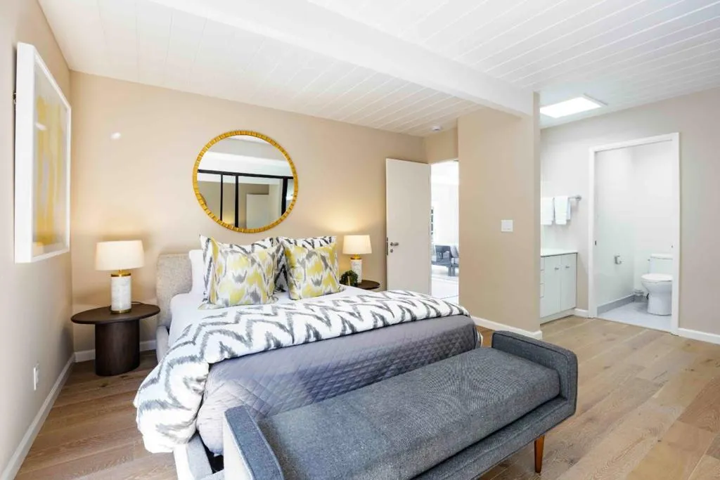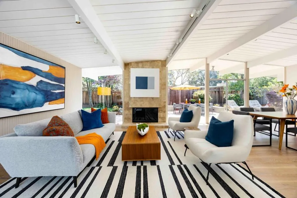 Set in the sought-after Cherry Chase neighborhood, this beautifully updated atrium-style Eichler blends timeless design with modern comfort. The home showcases signature Eichler elements including radiant heated floors, beamed and paneled ceilings, and walls of glass that bring the outdoors in, all centered around an inviting atrium courtyard. Nearly 2,500 square feet of updated interiors feature a living and dining room combination with a fireplace, a kitchen with quartz countertops and top-brand appliances, and a dedicated office. Four bedrooms include an inviting primary suite, while multiple points open to either the atrium or the peaceful backyard with a newly planted lawn, patio, and built-in grill for indoor-outdoor living. Additional highlights include solar panels and a 2-car garage. Prime location near parks, shopping, dining, Apple, and Highway 85, served by top schools (buyer to verify eligibility).