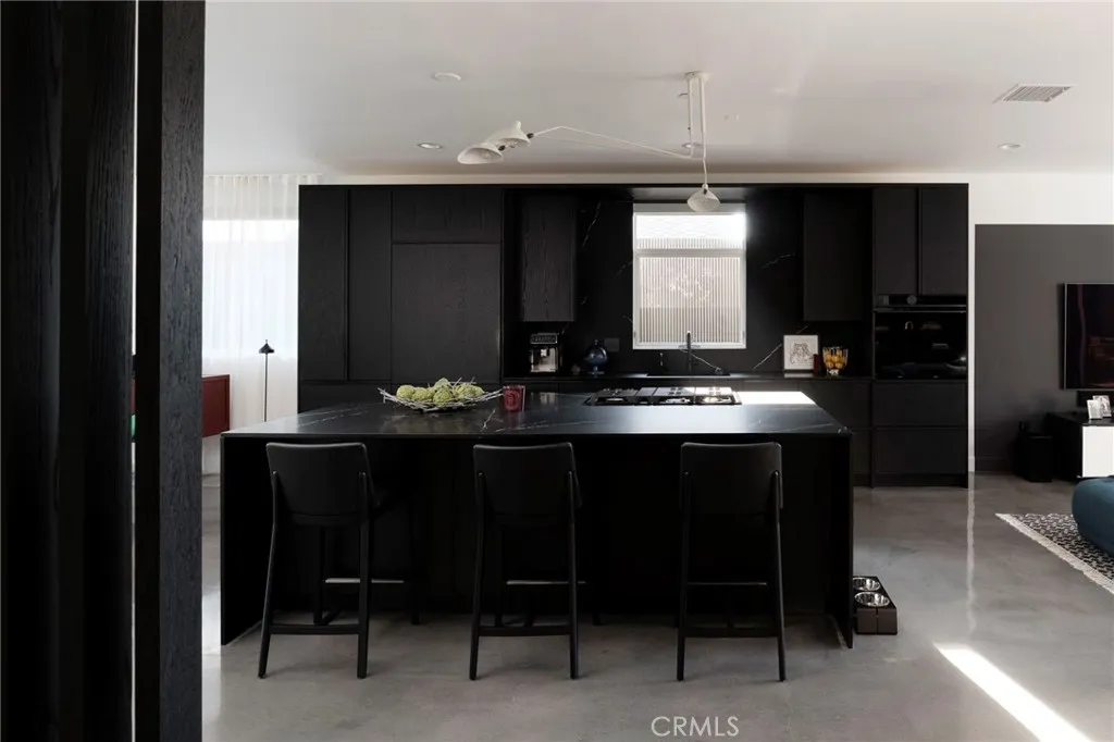 Welcome to a striking architectural residence in the highly sought-after Alamitos Heights neighborhood of Long Beach. Built in 2016 and thoughtfully upgraded throughout, this modern home offers the feel of newer construction with refined, high-end finishes and intentional design at every turn. Featuring 3 bedrooms, 3 bathrooms, and a versatile bonus space currently utilized as an art studio, the layout is both functional and inspiring. Clean lines, expansive Milgard windows, and seamless indoor-outdoor flow define the living experience, while polished concrete floors and curated design elements create a sophisticated yet livable environment. The chef’s kitchen is a true centerpiece, showcasing custom hand-built cabinetry with integrated storage solutions, quartz slab countertops and backsplash, and a suite of premium appliances including a Fisher & Paykel built-in panel refrigerator/freezer, JennAir 36” gas cooktop with downdraft, Miele panel dishwasher, and a Fisher & Paykel multi-functional wall oven. A built-in wine cooler and reverse osmosis system complete the space. The living area is anchored by a custom black steel fireplace with a Planika ethanol firebox, adding both warmth and modern elegance. Expansive La Cantina doors open to a beautifully designed outdoor retreat featuring a Brazilian wood wraparound deck with integrated lighting, lush landscaping, and tall NewTechWood privacy walls, creating a private and serene setting ideal for entertaining. Additional highlights include a commercial-grade silicone roof, designer outdoor lighting, smooth stucco exterior, and a fully upgraded garage with a custom NewTechWood door, epoxy flooring, and Flow Wall cabinetry system. Ideally located, this home is just moments from the shops and dining of Belmont Shore and within close proximity to the soon-to-be revitalized Colorado Lagoon, offering an incredible blend of coastal lifestyle and neighborhood charm. This is a rare opportunity to own a design-forward home in one of Long Beach’s most desirable neighborhoods, offering modern construction, thoughtful upgrades, and a truly elevated indoor-outdoor lifestyle.