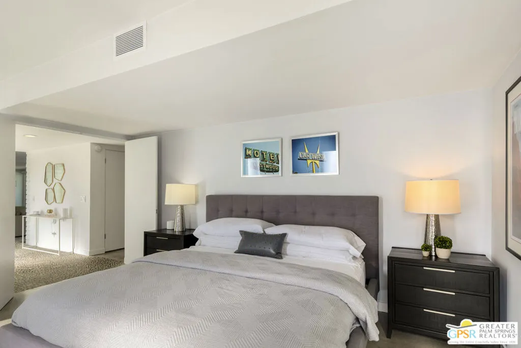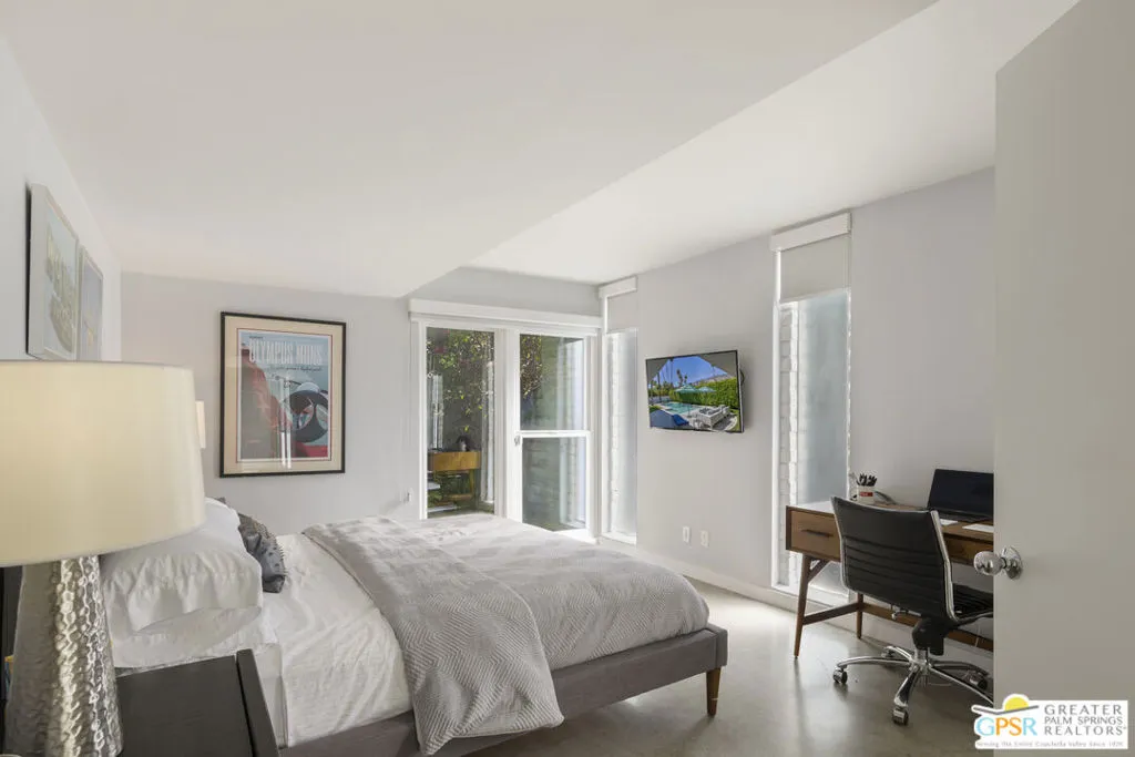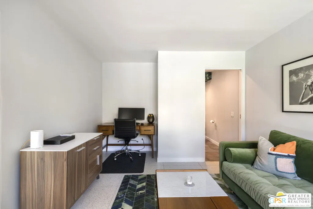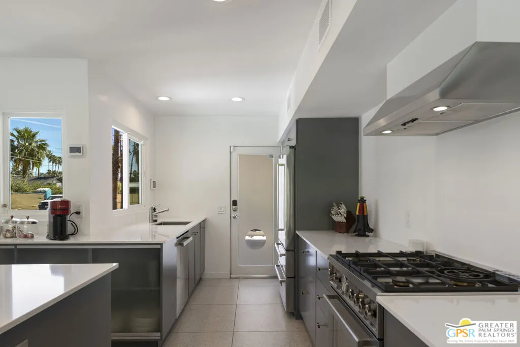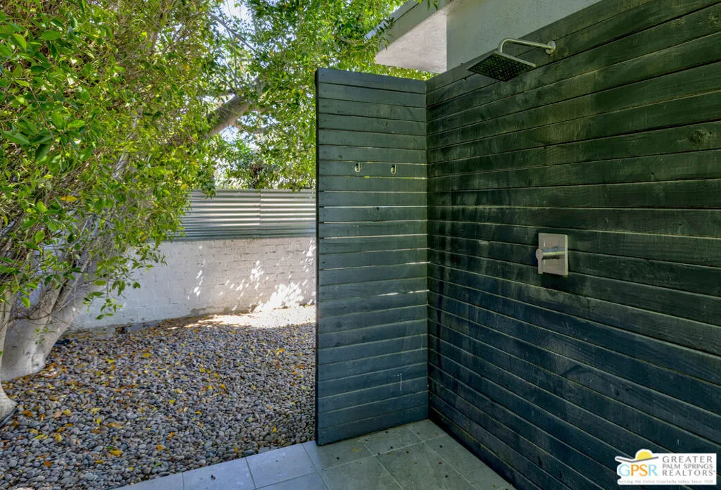 Located in the heart of Palm Springs' coveted Deepwell neighborhood, this quintessential 1961 mid-century modern home blends architectural character with thoughtful modern upgrades. Framed by a dramatic circular driveway and surrounded by gorgeous mountain views from both the front and back, the setting is as iconic as the home itself. Inside, a dramatic rounded wall and statement fireplace anchor the living room, creating a true architectural moment, while walls of glass and an effortless layout open to the outdoors, delivering the indoor-outdoor lifestyle Palm Springs is known for. The home has been updated with new terrazzo-style flooring, fresh interior paint, and new double-pane windows throughout, while preserving its original Italian stone and rock entryway an ideal balance of authenticity and refinement. The remodeled kitchen is both striking and functional, featuring gorgeous quartz countertops, premium Italian appliances, and a new gas line, all designed to connect seamlessly to the main living spaces and outdoor areas. Anchored by a dining area with beautiful mountain views, this space is ideal for both everyday living and entertaining. All three bedrooms are generously sized, offering comfort and flexibility, while the fully remodeled bathrooms showcase elevated finishes, including designer wallpaper. The primary suite is a true retreat, featuring a large walk-in closet, a massive walk-in shower, enhanced ventilation, and direct access to a private outdoor shower, perfectly embracing the indoor-outdoor lifestyle. An additional bonus office/den/guest area, complete with its own bath and direct access to the backyard, adds versatility and function. Step outside to a private backyard retreat featuring a pool and spa, new landscaping and outdoor lighting, multiple areas to relax and entertain, and stunning mountain views that create a true desert backdrop. Additional upgrades include owned solar with a Tesla Powerwall, two new A/C units, two new hot water heaters, a brand new roof (approximately 5 months old), and two new sewer lines connected to the city, offering both efficiency and peace of mind. With 3 bedrooms and 3 bathrooms, this is a rare opportunity to own a true architectural mid-century home in one of Palm Springs' most iconic neighborhoods, where timeless design meets modern comfort.