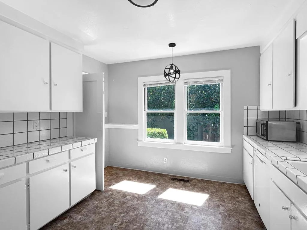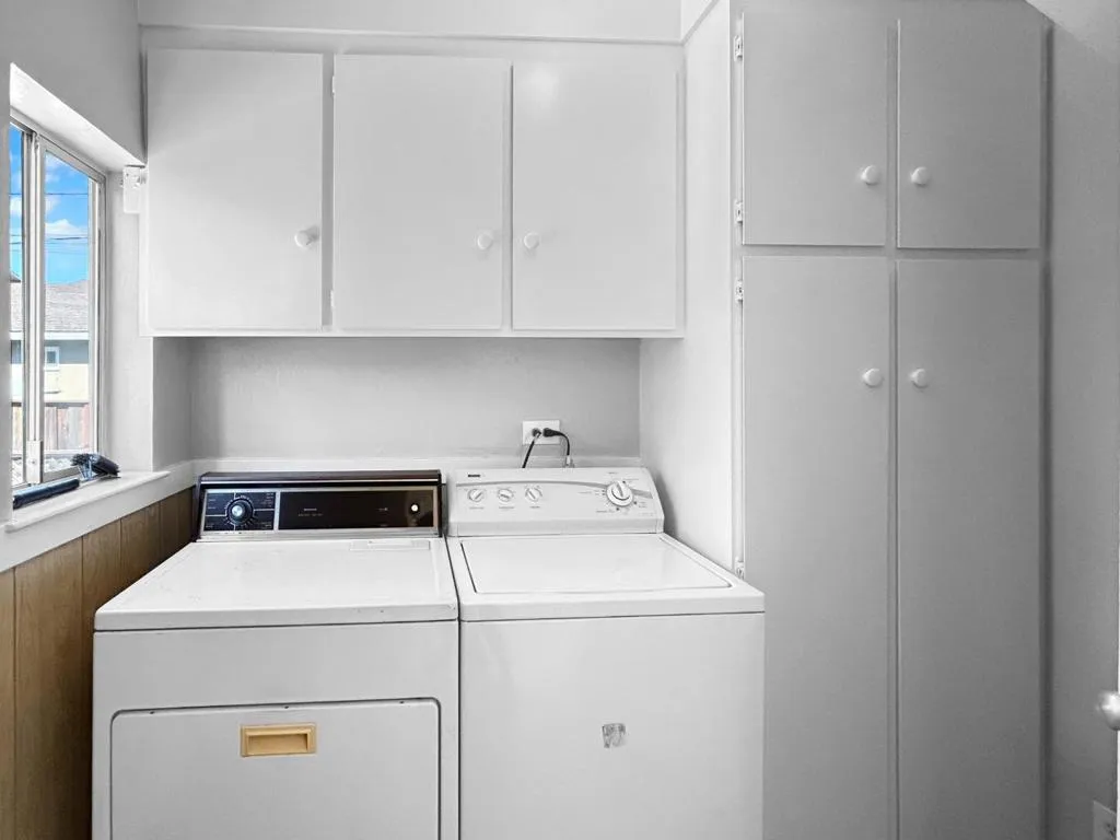Beautifully maintained light-filled single-family home on the border of Burlingame, just moments from Burlingame Avenue's renowned dining, shopping, and Caltrain. This inviting residence features a bright living room with a wood-burning fireplace and classic mantel, flowing through an elegant archway into a separate dining room. Gleaming hardwood floors extend throughout, enhancing the home's warmth and character. The kitchen offers tile countertops, a gas range, and a dishwasher, with an adjacent laundry room featuring a washer and dryer and direct access to the backyard patio, perfect for indoor-outdoor living. Two generously sized bedrooms are complemented by an updated hall bathroom featuring earthy, marble tile and a soaking tub. Additional highlights include a half garage space ideal for storage or a workout space, and a private backyard ready for relaxation or entertaining. Note: The home has been virtually staged. Minimum 720 FICO and 2.5x rent as income to qualify.