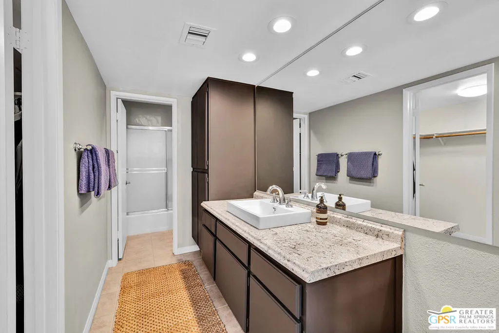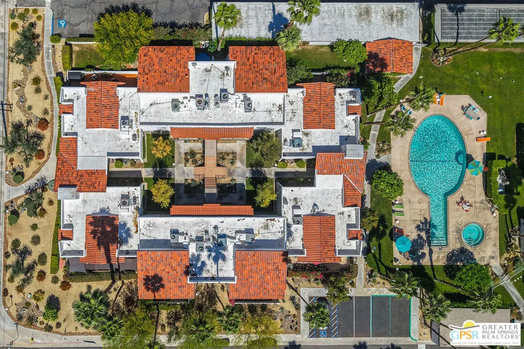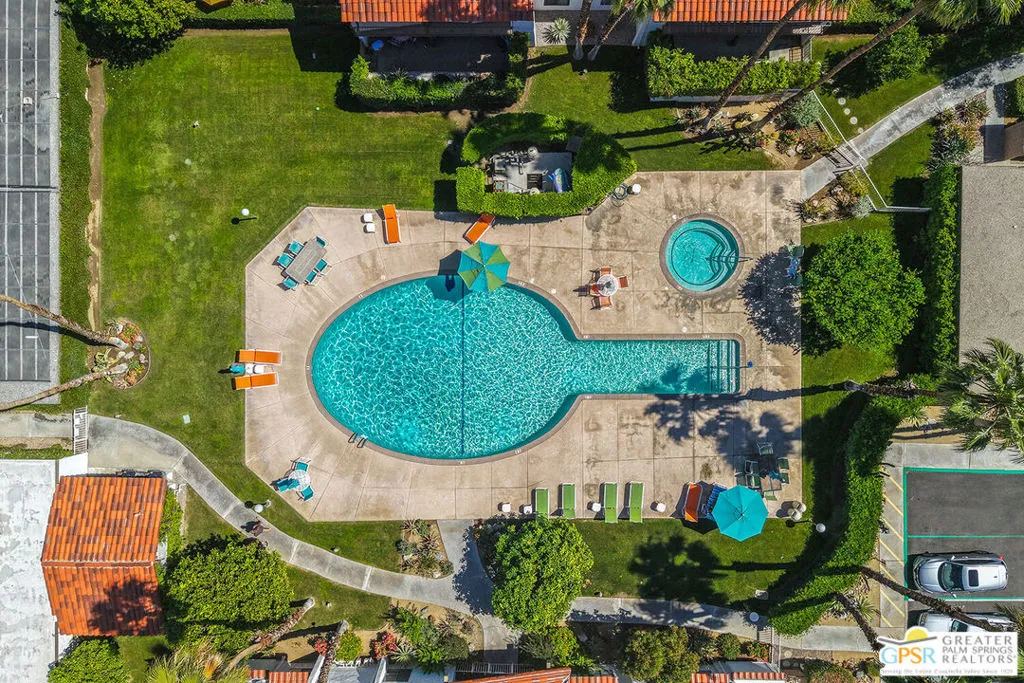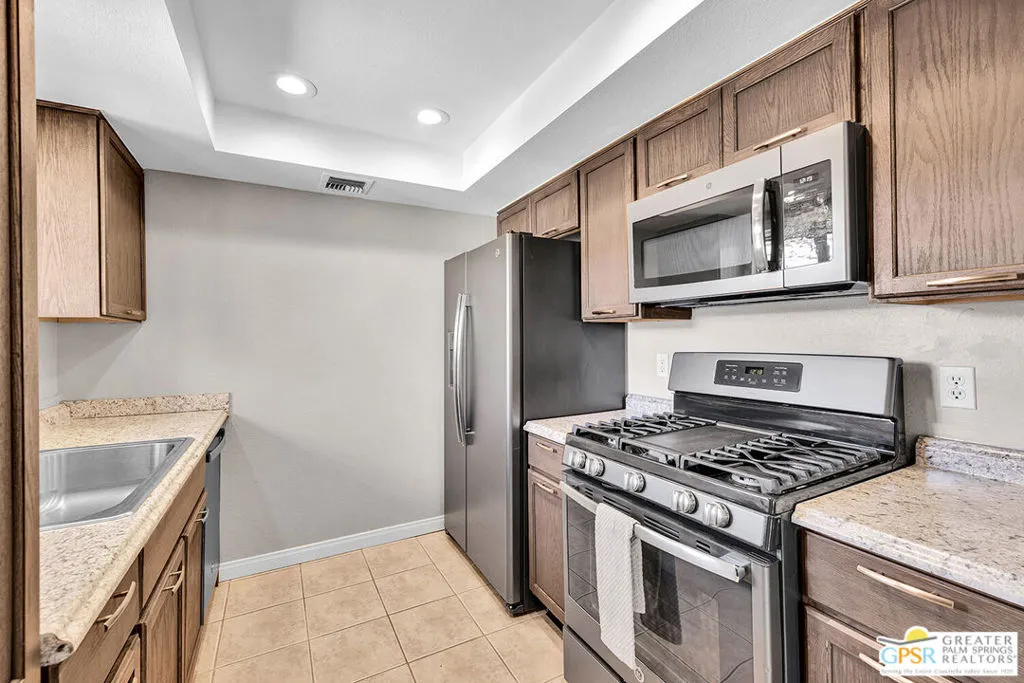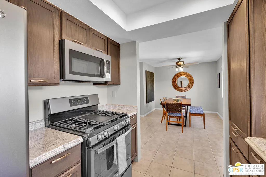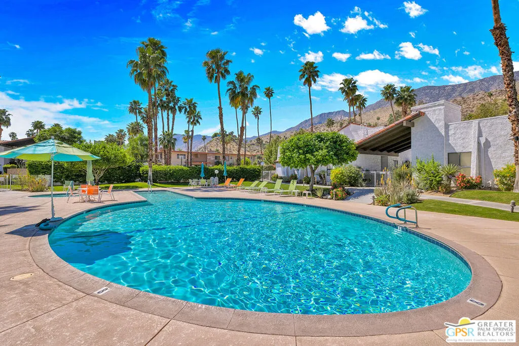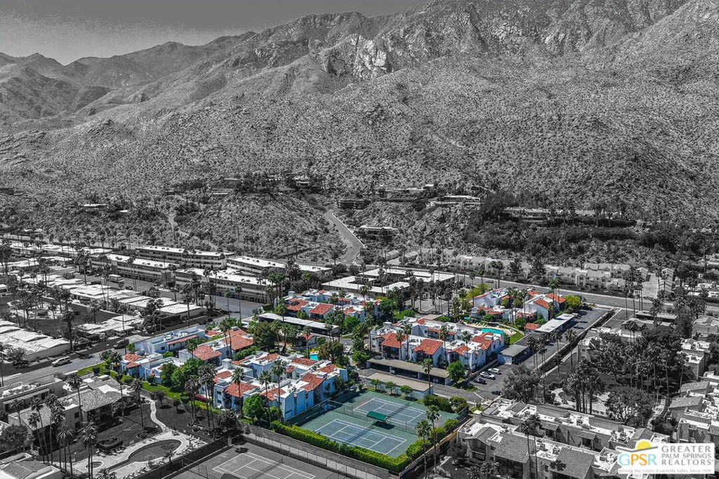 This well updated 2-bedroom, 2-bath condo at Estados South is ideally located in South Palm Springs, just one block from the base of the San Jacinto Mountains. Situated on the second floor, the home is designed with a split-bedroom layout for added privacy and is filled with natural light thanks to vaulted ceilings and large windows with desirable south-facing mountain views. The kitchen has been updated with stainless steel appliances, a gas range, and offers generous storage. The condo is offered furnished, making it well suited as a full-time residence, seasonal retreat, or investment property. Residents of Estados South enjoy access to two pools, two spas, and two tennis courts in a well-maintained, resort-style setting. The location provides convenient access to Smoke Tree Shopping Center, nearby golf courses, hiking trails, and downtown Palm Springs. The land lease extends through 2072, and additional details, including the inventory list, are available upon request.