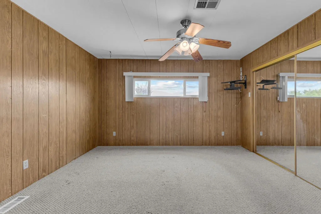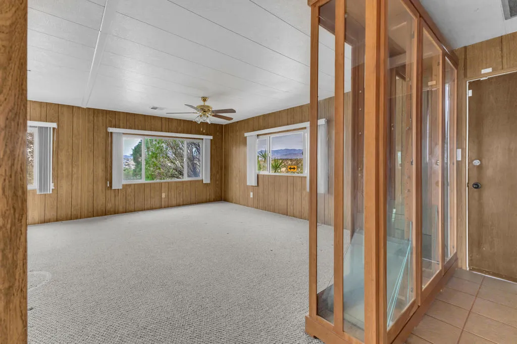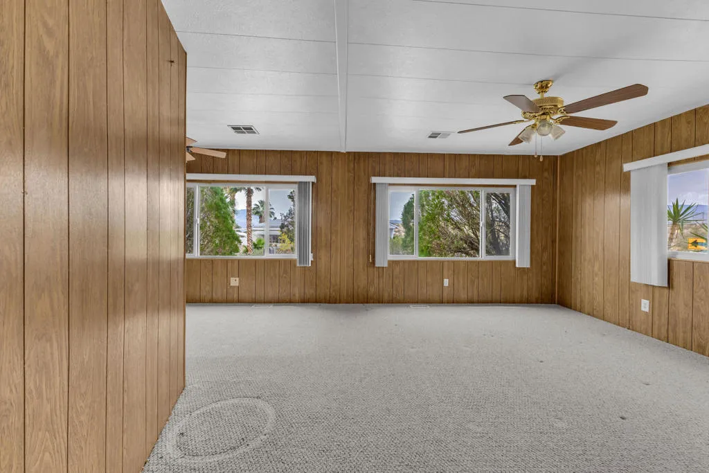There is a particular kind of freedom that comes with finding the right community at the right moment. Desert Crest Country Club has quietly been that place for discerning active seniors who want more from their days - and this 1,668 square foot corner-lot home is a compelling entry point into that life.You own the land outright. No space rent.The home is more generous than its category suggests. A spacious living room anchored by dual ceiling fans and a wall of windows sets a comfortable, unhurried tone. The kitchen is a genuine workhorse - abundant oak cabinetry, granite-look countertops, gas cooktop, double wall oven, dishwasher, and a full side-by-side refrigerator. Storage here is not an afterthought. The wet bar and entertaining room, complete with a mirrored back panel and built-in shelving, gives the home a social dimension that most simply do not have. The primary bedroom features a full built-in dresser and vanity wall - thoughtfully designed, and entirely functional. Two bedrooms, two baths, a bonus room with tile flooring ideal as a studio, craft room, or flex space, and a two-car garage round out a floor plan that lives larger than it measures.Then there are the views. A sweeping northern panorama of open desert floor and mountain ridgeline that shifts with the light throughout the day. It is the sort of vista that turns an ordinary morning into something worth savoring.Desert Crest is not simply a place to live. It is a community with real infrastructure for an active, engaged life. Unlimited golf on the nine-hole par 3 course. Eight indoor shuffleboard courts. A mineral water pool. Three natural hot spring spas. A clubhouse with a game room, library, gym, and entertainment facilities. All streets are County of Riverside owned and maintained - a rare and practical detail that matters more than it sounds.This is resort-caliber living without the resort price tag, in one of the Coachella Valley's most distinctive and welcoming senior communities.The desert has a way of offering exactly what you need, right when you need it. This might be that moment.