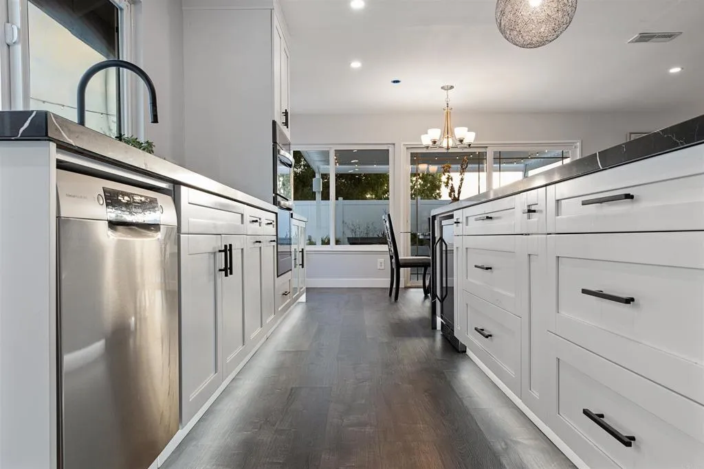 Gorgeous Remodeled Single-Story Home! This beautifully updated home features a stunning kitchen with a waterfall-edge quartz island, induction cooktop, and built-in beverage cooler. Step outside to a low-maintenance backyard designed for relaxation and gatherings, ideal for al fresco dining. After a day at the beach, rinse off in the outdoor shower and unwind in the private jacuzzi. Enjoy a prime location within walking distance to restaurants, cafés, shopping, and Trader Joe’s, with just a short drive to world-famous Moonlight Beach and downtown Encinitas. The garage is equipped with two sets of washer and dryers, numerous built-in cabinets, and overhead racks. Step-free entry is perfect for aging in place. Currently operating as a successful 5-star Airbnb, this property offers excellent income potential. Additional highlights include fully owned solar (15 panels) and a Level 2 EV charger, providing both sustainability and cost savings. No HOA fees!