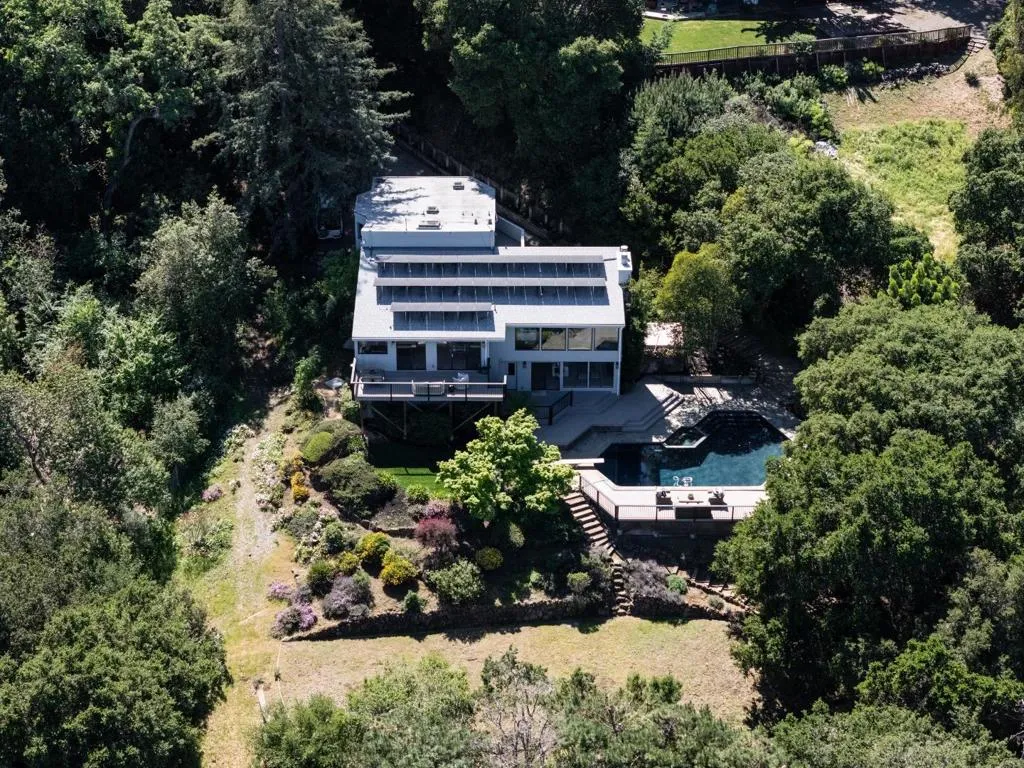 Sweeping Bay views, exceptional privacy, and a whole-home renovation define this architectural contemporary on one acre with solar power. Positioned well back from the street, the property offers a wonderful sense of seclusion while opening to expansive Bay views out to the San Mateo and Dumbarton Bridges and across the East Bay hills and Silicon Valley. The redesigned interior centers around an open-concept layout with vaulted paneled ceilings and white oak floors throughout, plus beautifully remodeled kitchen and baths, all finished with a fresh, designer aesthetic. There are 5 bedrooms, an office, and 3.5 baths (one with sauna), arranged to support both everyday living and flexible lifestyle needs. Outdoor spaces are equally compelling, with level areas for recreation and entertaining, a Bay-view deck, pool and spa, plus new lawn. This home delivers dramatic design, resort-style livability, and a rare connection to both nature and the San Francisco Bay.