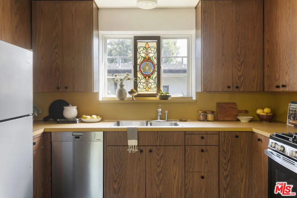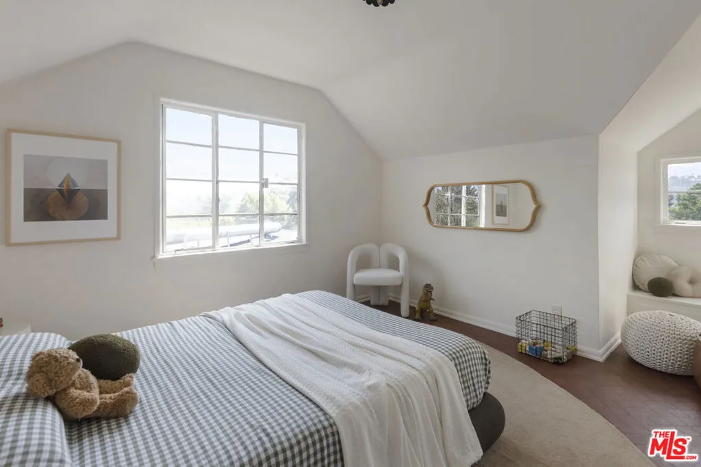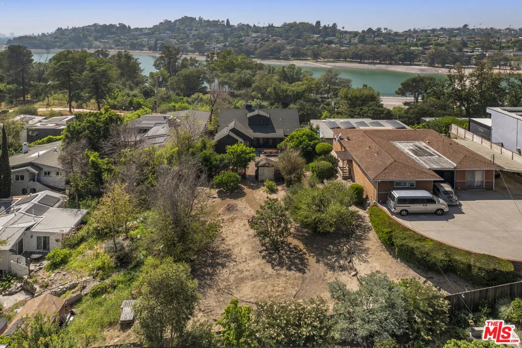 Across the street from the Silver Lake Reservoir is this effortlessly cool, character home on a 9,504 sqft lot with a shockingly large backyard. In the Ivanhoe School District and elevated above the street, the home offers both privacy and 360 degree views! Enjoy the views of the Reservoir, joggers and sunsets from the comfort of the picture windows in the living room, views of the San Gabriel Mountains from your backyard and Downtown skyline from upstairs. The floorplan is joyful and reminiscent of a time when dedicated spaces were the norm. Downstairs flows effortlessly from sunlit west-facing living room to formal dining room to eat-in kitchen with attached spacious mudroom + laundry room. Downstairs is completed with a family room and primary suite along with multiple access doors to the backyard. Upstairs are two charming bedrooms each with dormers facing the reservoir. The upstairs bathroom overlooks mountains and the backyard. There is also a large closet that could function as an excellent office. The backyard is remarkable in its size, utility and views. The yard is split into a front and rear section. The front section with brick path surrounded by small trees, foliage and is off the kitchen. Ideal for private dining and entertaining. The rear section is flat, open and park-like with a winding path that takes you past a couple fruit trees and opens to views of Silver Lake and the San Gabriels. Add a pool, build an ADU or both! In 22 years we've yet to come across a lot with this size and potential near the Reservoir. Finally, a two car garage at street level provides storage and EV charging capability. The property is an incredible value with immediate utility and unlimited upside potential.