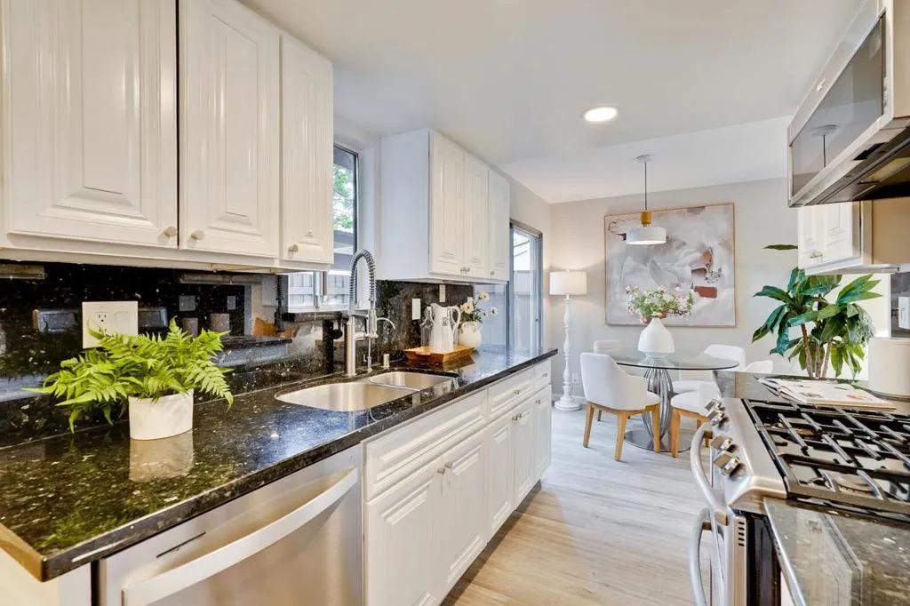 Stunning townhouse nestled in a sought-after Cupertino neighborhood with academically distinguished Cupertino schools : Lincoln Elementary, Kennedy Middle, and Monta Vista High! Enclosed front patio leads to inviting living room with recessed lighting and natural light flowing through the sliding glass door for everyday living and entertaining. Well-appointed kitchen is complete with granite countertops and backsplash, stainless steel appliances including gas range with double oven, dishwasher, refrigerator, and microwave. Dining area opens to the private back patio with storage area, for a relaxing area to study or play. Contemporary updated full bathroom showcases a modern vanity, lighted mirror, tiled shower and tub enclosure. Additional highlights include : Central A/C and furnace Carrier Heat Pump added in 2024, whole house repiped with Type L Copper in 2024, fresh interior paint, an indoor laundry area, and well-proportioned bedrooms for comfortable living. Two parking spots included, with assigned covered carport situated just outside of the back entrance. Enjoy access to community amenities including a pool, clubhouse, and greenbelt. HOA fee covers water, garbage, roof, and common areas. Conveniently located near parks, shops, dining, groceries, and major commute route.