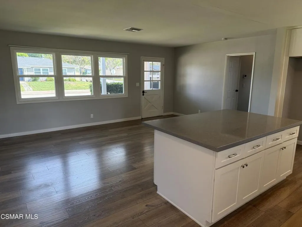 Beautifully remodeled single-story home with two car garage. This 3-bedroom, 2-bath residence offers a bright, open layout with wood-look flooring and newer paint throughout. The updated kitchen is a true centerpiece, featuring crisp white cabinetry, quartz slab countertops, stainless steel appliances--including a gas range, microwave, dishwasher, and sink--and a spacious center island with counter seating.Both bathrooms have been upgraded with newer vanities, sinks, toilets, fixtures, and shower/tub combinations finished with classic white subway tile. Additional features include central A/C, newer dual-pane windows, and recessed lighting for a clean, contemporary feel. The property also has a two-car garage with a dedicated laundry area and extra storage space. Step outside to a large, fenced backyard with a grassy area, and a solid covered patio--perfect for relaxing or entertaining year-round.