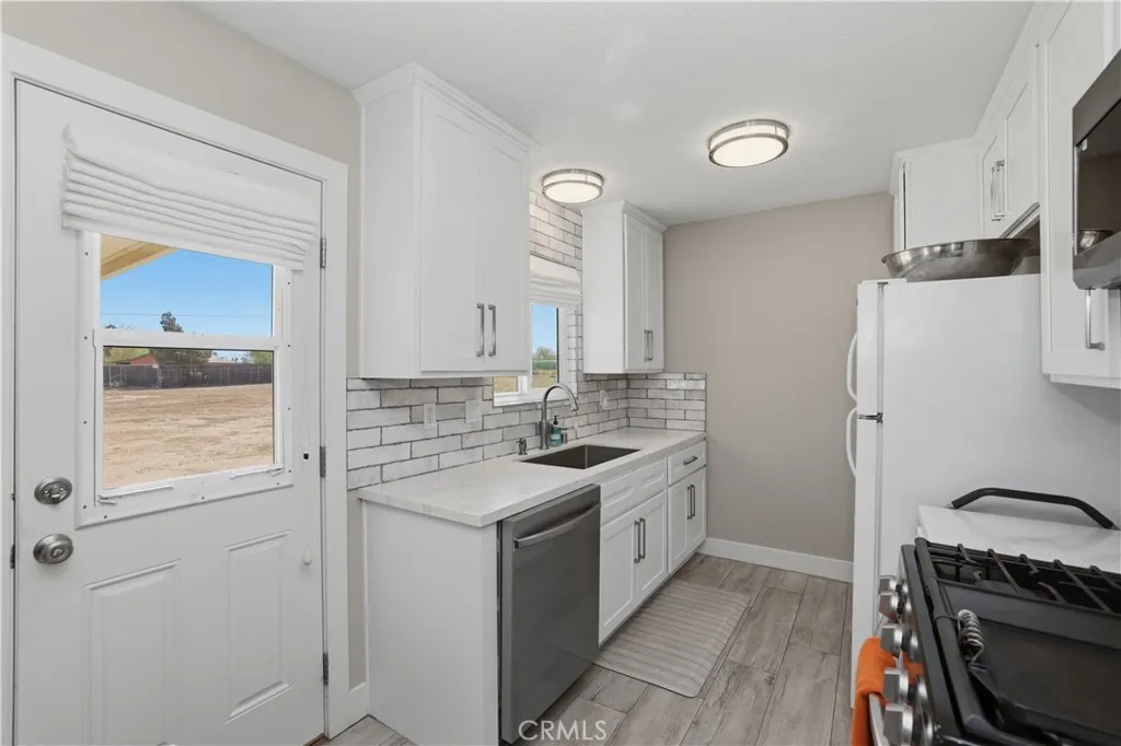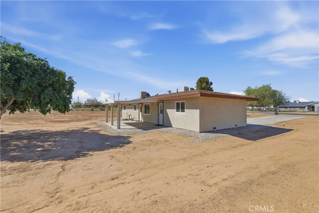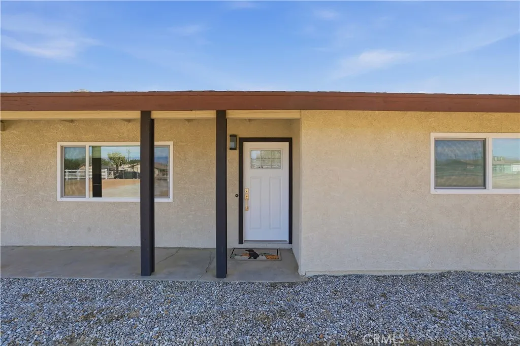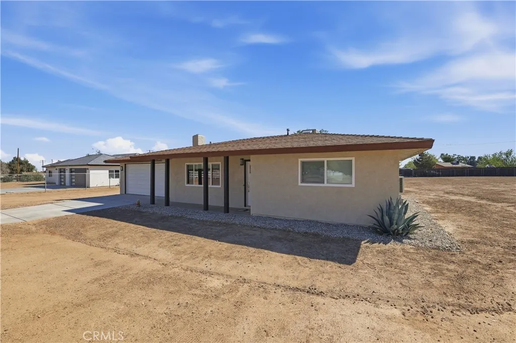 Welcome to this gorgeous 2-bedroom, 1-bathroom home, 882 sq. ft. of single-level living on a generous 45,600 sq. ft. fenced lot w/ a automatic gate, and a 2nd gate entrance located near the freeway in Hesperia. This property boasts a comfortable floor plan, perfect for modern living. The kitchen features quartz countertops, built-in appliances, and a nice sized pantry. Large living area w/ Fireplace. This home also offers two bedrooms with and updated bathroom. Laundry & two car garage, as well. Additionally, the expansive lot provides lots of potential making this property an excellent choice, with comfortable living and Commuter Close. This Beautiful Home has recently been remodeled, new windows, flooring, heating system doors, appliances. Check it out today! Photos of fire in fireplace are computer generated.