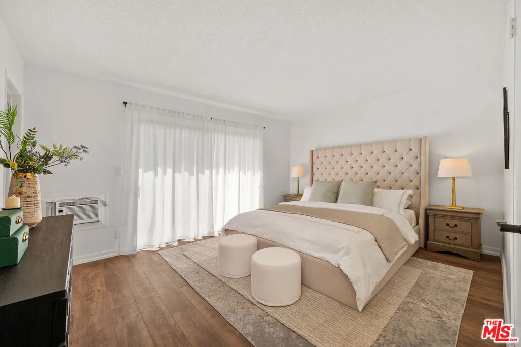 Experience the perfect blend of serenity and sophistication in this sun-drenched, upper-floor corner residence located in the heart of Westwood. Nestled within an intimate and meticulously maintained 16-unit building, this home welcomes you through a charming central courtyard featuring a tranquil fountain. Inside, the bright and airy floor plan is highlighted by elegant plantation shutters in the living and dining rooms and a beautifully remodeled kitchen complete with granite countertops, and stainless steel appliances. The spacious primary suite serves as a true sanctuary, offering an en suite bath, two generous closets, including an expansive walk-in and a private balcony perfect for enjoying the fresh air. Comfort is guaranteed year-round with cozy central heating and 3 wall A/C units. This exceptional condo also includes the convenience of two parking spaces in a gated garage (one covered and one semi-covered), on-site laundry, and water and trash utilities included in the HOA fee. Situated in a strictly non-smoking building just moments from UCLA, Westwood Village, and Century City, you'll be perfectly positioned near world-class shopping, dining, and transportation. This is truly a lovely and quiet spot to call home.