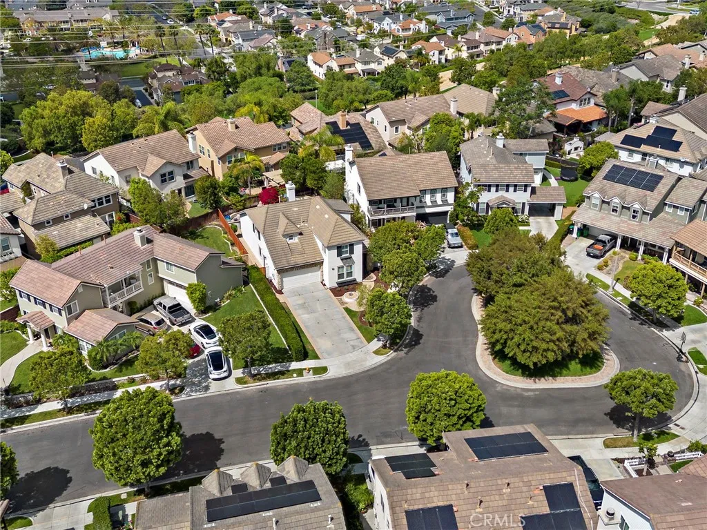 Welcome home to 9 St. Steven Court, ideally situated on a picturesque, tree-lined cul-de-sac in the heart of Ladera Ranch. This beautifully remodeled four-bedroom, three-bathroom home offers approximately 2,567 square feet of thoughtfully upgraded living space, blending comfort, style, and modern convenience. Set on an oversized lot with a rare 4+ car driveway, this home makes a striking first impression with fresh exterior paint, updated landscaping, owned solar, and new wood fencing. Step inside to discover NEW luxury vinyl flooring throughout and an expansive great room featuring soaring ceilings and abundant natural light. The soft contemporary design is highlighted by a custom fireplace with built-in cabinetry, including a discreet hideaway IT space. Additional upgrades include LED lighting, newer permited windows with WiFi-controlled custom shades showcasing a beautiful view of the backyard. The versatile floor plan includes two bedrooms on the main level, including a spacious primary suite and a secondary bedroom equipped with a custom Murphy bed, along with a fully remodeled bathroom. Upstairs, you’ll find two oversized bedrooms, a generous loft, and an additional remodeled bathroom featuring quartz countertops. Large windows in both the great room and primary suite overlook the private, pool-sized backyard—perfect for entertaining or relaxing. Enjoy a tranquil setting with a WiFi-controlled pond water feature, BBQ area, and fire pit for effortless alfresco dining and embracing the Ladera Ranch lifestyle. Additional upgrades include:Owned 9.0 kW solar system with 22 Silfab Elite 410W panels and Enphase microinverters, Enphase combiner and monitoring system (battery-ready), Reverse osmosis water system and water softener, Custom shutters and electric roller blinds, New baseboards, Two dishwashers whole house fan, and a beautifully remodeled laundry room! Ideally located within walking distance to Ladera Ranch Elementary and Middle School, Founders Park, Avendale Clubhouse, lap pools, pickleball courts, and miles of scenic trails just outside your door. Ladera Ranch HOA offers exceptional amenities, including community security and complimentary Cox high-speed internet.