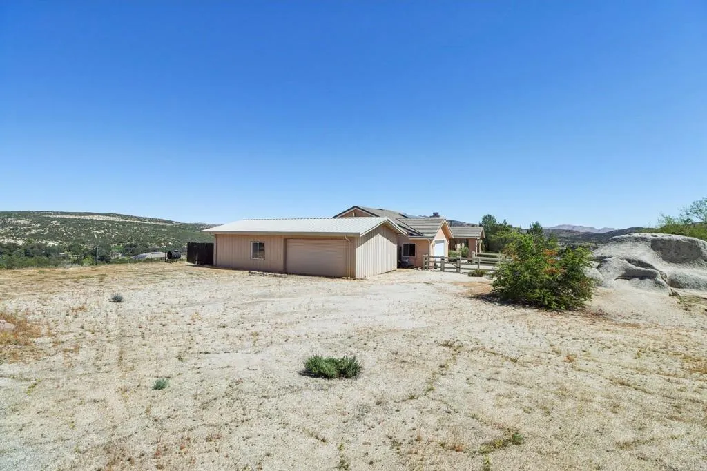 Beautiful 3 bed, 2 bath home with a dedicated office that can easily be converted into a 4th bedroom. Situated on approximately 6.5 acres across two parcels—one 6-acre residential parcel and an additional .51-acre parcel zoned Commercial (Miscellaneous General), offering rare flexibility and potential for a variety of uses. The property is fully fenced and cross-fenced, ideal for animals, equipment, or multi-use living. Features include multiple gated entries, a striking cinderblock driveway entrance, and a newly asphalted driveway. Enjoy low utility expenses with paid solar, private well, and septic—paired with water connections throughout the property, ideal for animals, irrigation, or future expansion. The insulated warehouse with roll-up door and electricity provides excellent space for a workshop, storage, or possible business use. Inside, the home offers an open-concept layout with a spacious kitchen and center island. The oversized primary suite includes private backyard access, while the primary bathroom features dual sinks, a soaking tub separate from the shower, a private toilet room, and a walk-in closet. All additional bedrooms are generously sized with mirrored closet doors. Plenty of room for RV parking, animals, and all your recreational or business needs. The combination of residential living and commercial zoning makes this a rare and versatile opportunity. Come see the possibilities this property has to offer.
