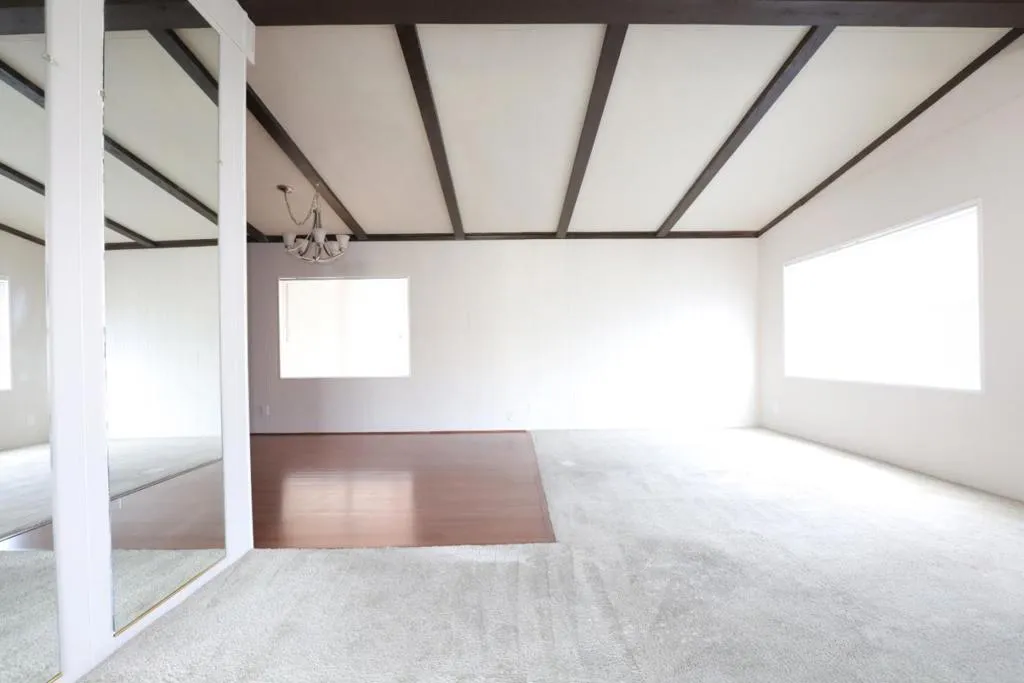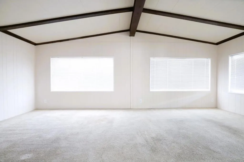 Explore this charming 1976 home in the Spanish Ranch 2 Community, offering 1,488 square feet of living space with 2 bedrooms and 2 bathrooms. Low Space Rent. The living room is carpeted for comfort, while the family room includes a small bar and features linoleum flooring. The dining area is equipped with cabinets and also has linoleum flooring. The kitchen comes with a microwave, refrigerator, stove, oven, dishwasher, garbage disposal, ceiling light, and linoleum flooring. Both bedrooms are carpeted, with one bedroom featuring a walk-in closet. The master bathroom offers double sinks, a sliding glass door, cabinets, linoleum flooring, and a tub and shower. The guest bathroom features a standing shower and linoleum flooring. The backyard includes a shed, and the utility room has linoleum flooring as well. A washer and dryer are included, along with central AC and heat. Stop by today to see your new home!