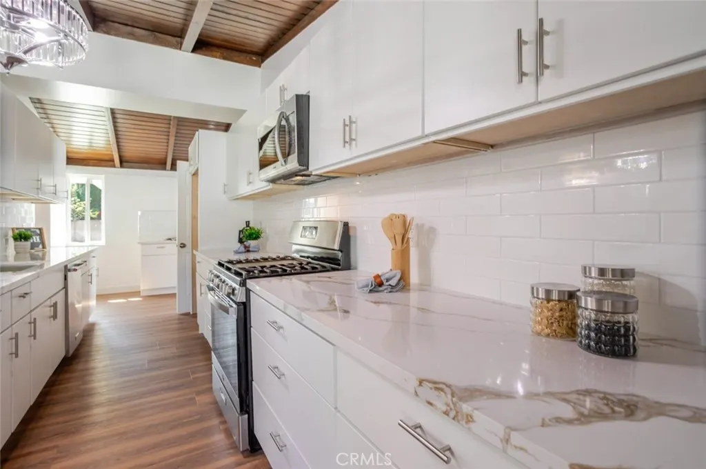 A fully upgraded Reseda home where modern sophistication meets timeless charm. This beautifully renovated three-bedroom, two-bath residence—complete with a versatile bonus room—has been thoughtfully designed with high-end finishes, sleek fixtures, and fully updated systems, all completed with permits for total peace of mind. Designed for both comfort and functionality, the home features two spacious living rooms, offering incredible flexibility for everyday living and effortless entertaining. Whether you're hosting guests, creating a media lounge, or enjoying a quiet night in, the layout adapts beautifully to your lifestyle. Warmth and character shine throughout with a charming breakfast nook, rich laminate flooring, and striking wood-beamed ceilings that add depth and architectural appeal. Step outside to newly designed landscaping that enhances curb appeal while creating inviting spaces to relax, entertain, and soak in the California sunshine. The property also offers excellent ADU potential—ideal for generating additional income, accommodating multigenerational living, or expanding your living space. Major upgrades, including a new HVAC system, roof, and windows, add tremendous value and make this home truly move-in ready. Tucked away on a quiet, well-maintained street, the location offers a peaceful neighborhood feel with convenient access to parks, shopping, dining, and major commuter routes. This is a rare opportunity to own a fully upgraded, fully permitted home with ADU potential—perfectly blending modern living, timeless style, and long-term value in one of Reseda’s most desirable neighborhoods.