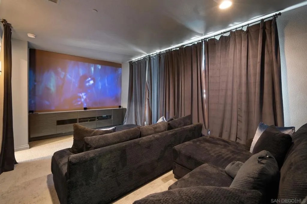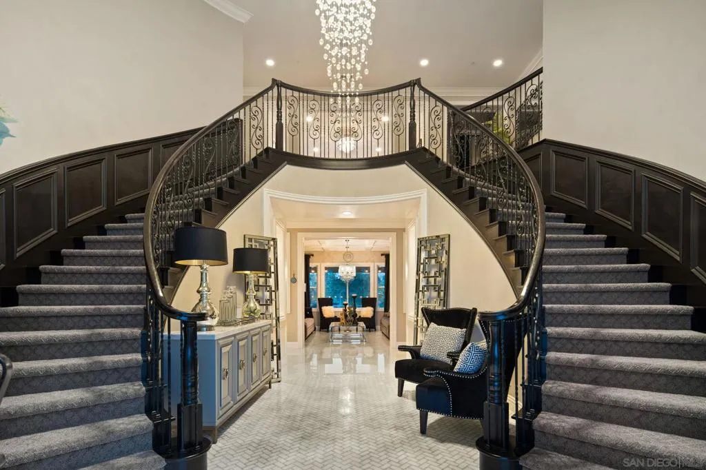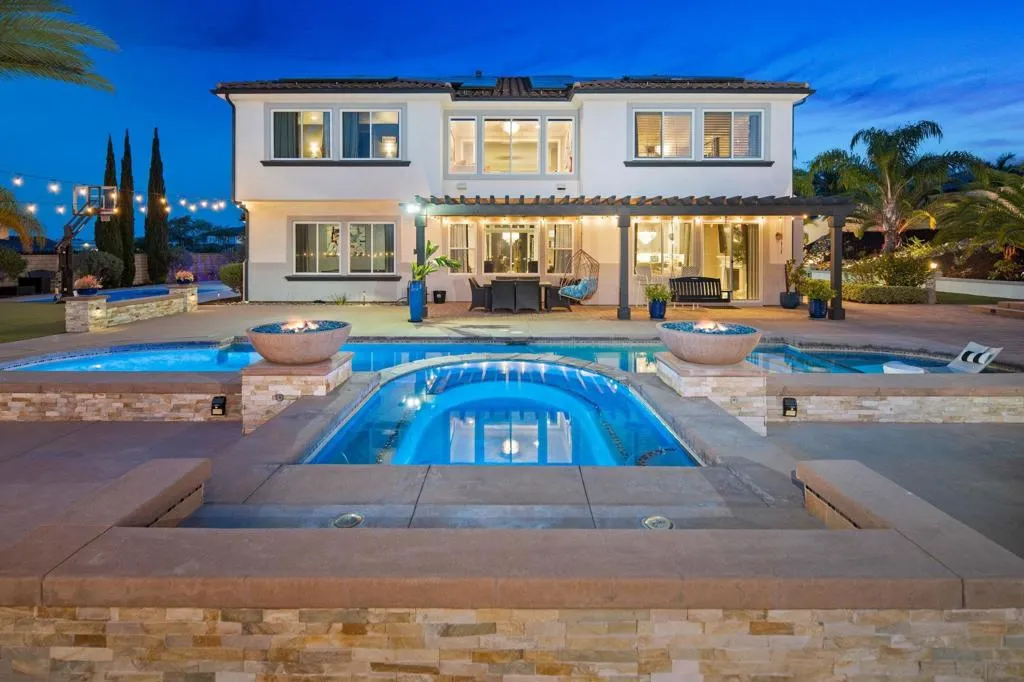 Welcome to one of the most exceptional homes ever offered in Stonebridge Estates, showcasing impeccable upgrades and a truly elevated luxury lifestyle. A grand double-door entry opens to a dramatic dual staircase with a statement chandelier, setting the tone for the elegance throughout. Beautiful tile flooring spans the main level, complemented by coffered ceilings and custom wall paneling that add depth and sophistication. The beautifully updated chef’s kitchen features high-end finishes and is designed for both everyday living and seamless entertaining. The home offers 5 spacious bedrooms, one currently configured as a private movie theater, including a main-level bedroom with its own en suite bathroom. In addition, there is a dedicated office and a separate home gym, both of which can serve as optional bedrooms. Each bedroom includes its own en suite, while the stunning primary suite feels like a private retreat, complete with a spa-inspired bath, freestanding soaking tub, electric fireplace, and a custom built-in entertainment center. Additional highlights include a striking saltwater fish tank and custom built-in entertainment center in the family room. The resort-style backyard is nothing short of spectacular, featuring a gorgeous pool with dramatic fire bowls, a cabana with fireplace and TV, a full outdoor kitchen with BBQ, pizza oven, and bar seating, plus a half basketball court, all set against serene canyon views. Designed to truly have it all, this home offers an unmatched blend of luxury, comfort, and functionality, one of finest properties ever in Stonebridge