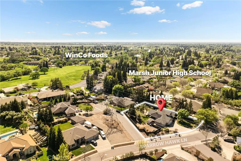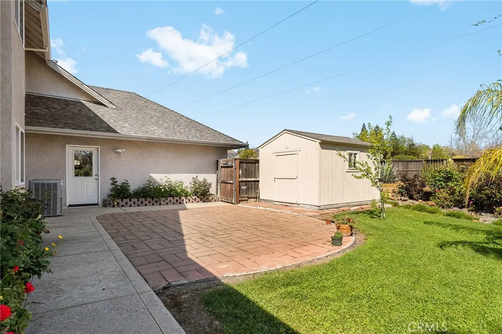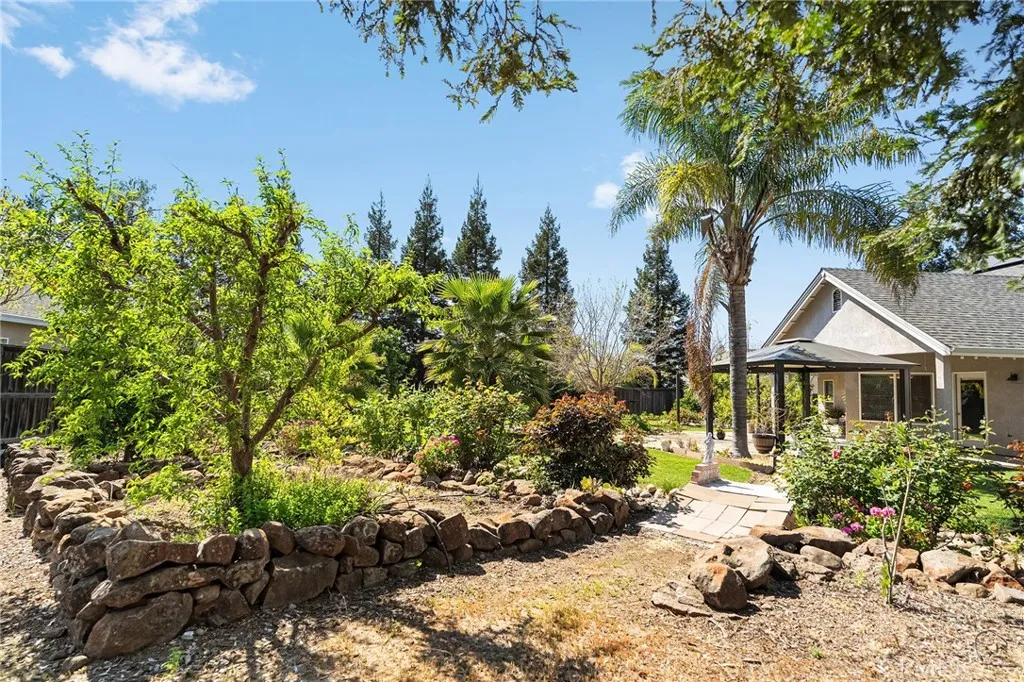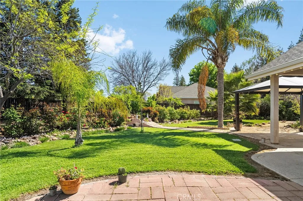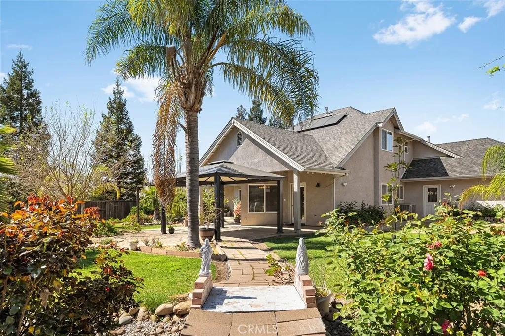 Set in a sought-after neighborhood near Upper Bidwell Park, this 4 bedroom, 2.5 bathroom home with owned solar offers a flexible layout and expansive outdoor space. This spacious 0.54-acre property offers a great outdoor setup with mature trees, roses, a garden area, and a large covered patio with extended flagstone walkways—plus plenty of room to expand or customize. At the front of the home, French doors open to a flexible den or bonus space that works well as a home office, second living area, or potential 5th bedroom. Inside, the open layout is complemented by 10-foot ceilings, crown molding, and oversized baseboards, creating a comfortable and cohesive feel throughout. The main living and dining areas are anchored by a two-sided gas fireplace and offer nice views of the backyard. The kitchen is spacious and functional, featuring granite countertops, a tile backsplash, double ovens, an extra-large pantry, and a peninsula with bar seating that connects to the dining area—ideal for everyday living and entertaining. The downstairs primary suite offers privacy and space, complete with a large walk-in closet and an en-suite bathroom with dual sinks, a jetted tub, separate shower, and privacy door. Also downstairs is a half bath and an indoor laundry room with a sink, counter space, and plenty of storage. Upstairs, you’ll find three generously sized bedrooms and a full bathroom. Additional features include whole-house sound wiring, a 3-zone HVAC system, a whole house fan, and owned solar for added efficiency. The backyard is expansive and thoughtfully laid out with mature landscaping, garden areas, a storage shed, and plenty of usable space. The property also includes an oversized 3-car finished garage and RV or boat parking with room for expansion. Conveniently located near schools, shopping, parks, and golf courses, this home offers space, functionality, and a great location.