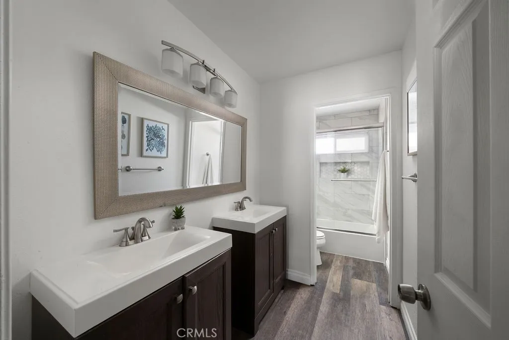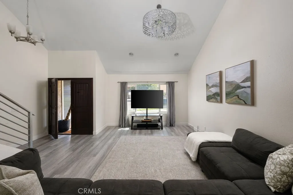 Welcome to an exceptional 4-bedroom, 3-bathroom pool home tucked away on a quiet cul-de-sac, offering the perfect blend of space, style, and functionality for modern Orange County living. Step inside to find newer flooring flowing throughout the home, creating a clean and cohesive feel. The formal living room welcomes you with soaring vaulted ceilings, recessed lighting, and an abundance of natural light, while the separate family room provides a comfortable space to relax and gather. A beautifully renovated wet bar adds a stylish touch, perfect for entertaining. At the heart of the home, the expansive kitchen is designed for both everyday living and hosting, featuring a 6-burner gas range with hood, generous counter space, ample storage, and views of the sparkling pool and spa. This thoughtfully designed home features a highly desirable layout, including a full bathroom on the main level—ideal for guests—with direct access to the backyard, making it perfect for poolside use. The downstairs bathroom showcases designer wallpaper and offers convenient indoor-outdoor functionality. Upstairs, you’ll find all four bedrooms, including the spacious primary suite overlooking the backyard and pebble tech pool, creating a true private retreat. The ensuite bathroom includes a walk-in shower and an impressive three closets, providing both comfort and functionality. Step outside to your own backyard oasis, complete with a pebble tech pool and spa, along with an oversized side yard—ideal for entertaining, play, or additional storage. Anderson sliding doors create a seamless connection to the backyard, while updated windows throughout the home enhance both comfort and efficiency. The front yard features a well-maintained grass lawn, adding to the home’s curb appeal. Additional highlights include solar panels for energy efficiency, an EV car charger, and a 3-car finished garage with epoxy flooring. Located in a desirable Orange neighborhood within a highly regarded school district and close to shopping, dining, and top local amenities, this home offers the perfect combination of comfort, upgrades, and everyday livability.