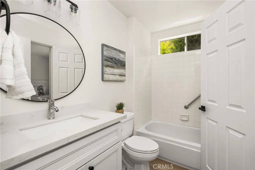 Beautifully upgraded and thoughtfully designed, this exceptional showplace with great curb appeal, brick accents, and new exterior paint in the upscale community of Normandale Heights offers modern style and comfort in a private, premier location, featuring tranquil greenbelt views, rare privacy, and a lush outdoor entertaining space with a sunny orientation. The design offers a bright, open feel throughout and a floor plan that adapts easily to a variety of lifestyles—whether you need a home office, guest space, or sufficient space for multigenerational living. Inside, extensive renovations and high-quality improvements create a truly move-in-ready residence. As you enter this truly remarkable home, you'll notice the grand living room and dining room with high vaulted ceilings and loads of windows that bring in natural light. The heart of the home is the remodeled kitchen, with new quartz counters, stainless steel appliances, white cabinetry, a breakfast nook, and sleek, modern finishes, all overlooking a beautiful, private backyard. The adjacent family room is accented by an oversized brick fireplace and wood mantel. The spacious primary suite features high vaulted ceilings and a luxuriously remodeled bathroom with new quartz countertops, a dual vanity, a seamless glass shower enclosure, a Roman soaking tub, and a large walk-in closet. Two additional upstairs bedrooms, one that could be a bonus room, share a remodeled secondary bathroom. Custom upgrades include new interior and exterior paint, new carpet, new baseboards, new luxury vinyl floors, new light fixtures, and ceiling fans. You'll love spending hours relaxing and entertaining in your tranquil backyard with a brick patio with an aluminum cover, perfect for dining alfresco. Located near the Lake Forest Sports Park, hiking and mountain biking trails, shopping, schools, and restaurants. Hurry on this lovely home—it will not last long at this price.