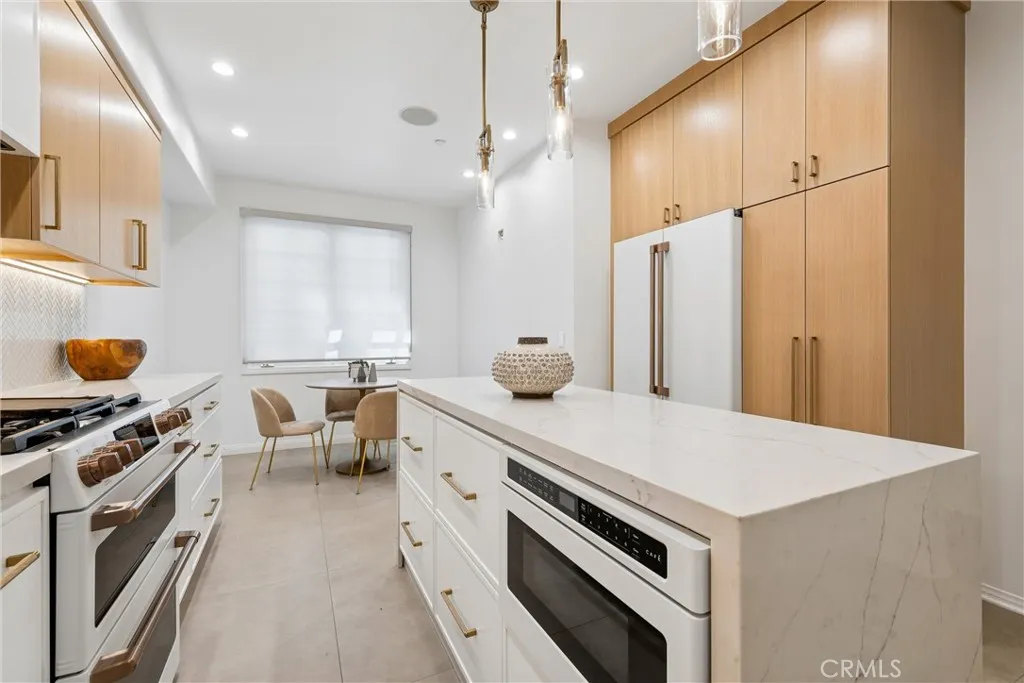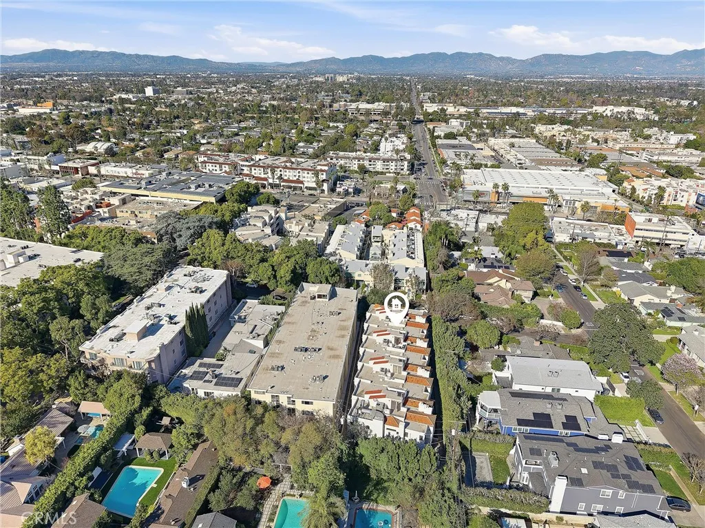 ALL OFFERS ARE DUE APRIL 14TH AT NOON. PREVIOUSLY SOLD IN MULTIPLES AT A MUCH HIGHER PRICE. Spacious, light-filled, and thoughtfully updated, this very rare 2-bedroom plus OFFICE townhome sits on one of Sherman Oaks’ most desirable streets between Stansbury and Hazeltine—just moments from Ventura Boulevard’s premier shopping, dining, and everyday conveniences. A formal entry introduces a well-designed layout featuring in-ceiling surround sound, multiple private patios and balconies, direct access to three parking spaces, and a generous in-unit laundry room updated in 2024. The oversized chef’s kitchen, remodeled in 2022, is a standout with custom wood cabinetry, chevron tile backsplash, tile flooring, Café appliances, a large center island with dining nook, and abundant storage—all enhanced by designer lighting and curated finishes. The dining area flows seamlessly into a bright living room, highlighted by Palladium-style windows and sliding doors that open to a private patio—perfect for outdoor dining and entertaining. A stylish powder room has been tastefully updated with modern fixtures and finishes. Upstairs, the primary suite offers a peaceful retreat with vaulted ceilings, a sitting area, walk-in closet, and sliding doors leading to a private balcony with treetop views. The spa-like primary bath features dual vanities and a recently remodeled soaking tub. The second bedroom includes its own walk-in closet and an updated en-suite bath. An expansive rooftop deck captures sweeping, nearly 180-degree views—ideal for relaxing or hosting guests. Additional features include a tankless water heater (installed approximately two years ago), convenient access to the 101 Freeway and Westside routes, and close proximity to Ventura Boulevard hotspots, including shopping, dining, Ralphs, and Whole Foods. Set within a meticulously maintained community known for its lush landscaping and strong curb appeal, this home offers comfort, style, and an exceptional location.