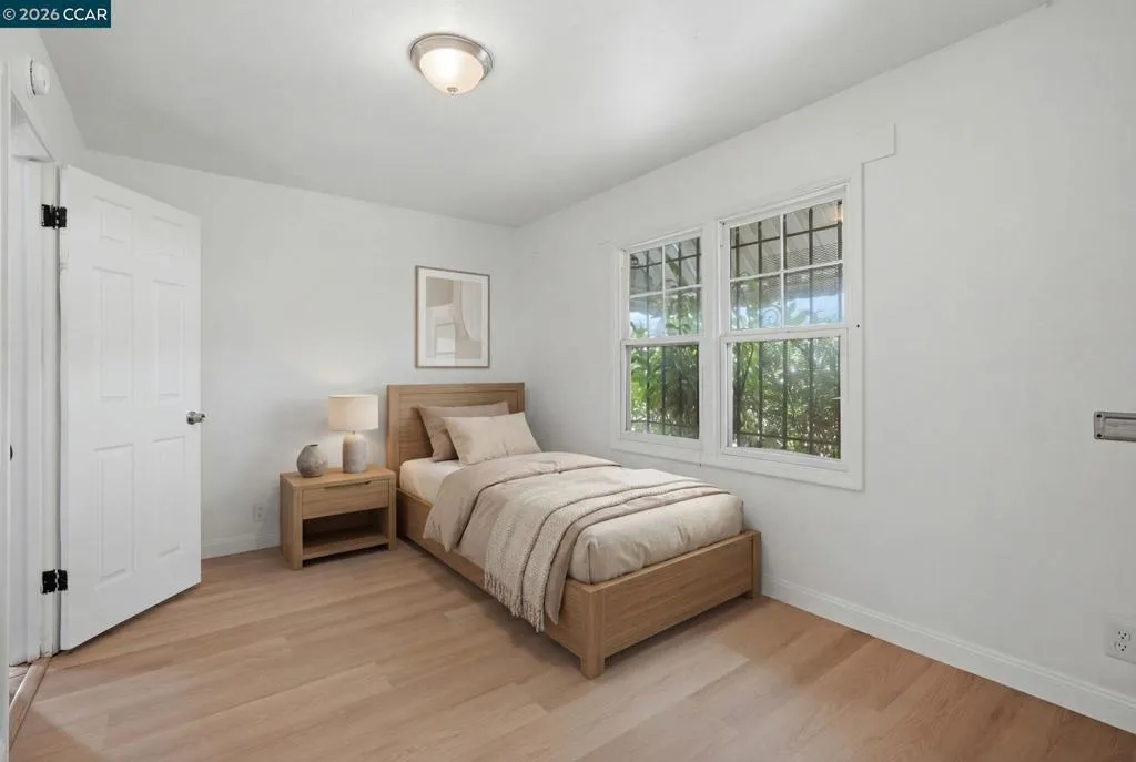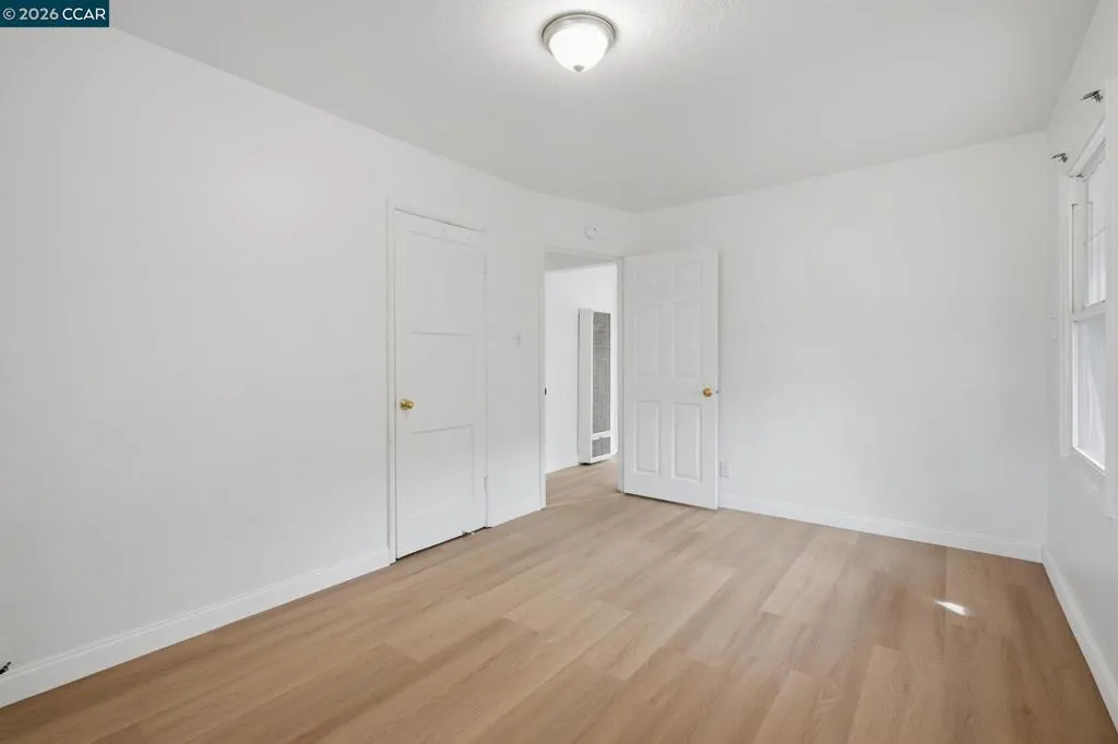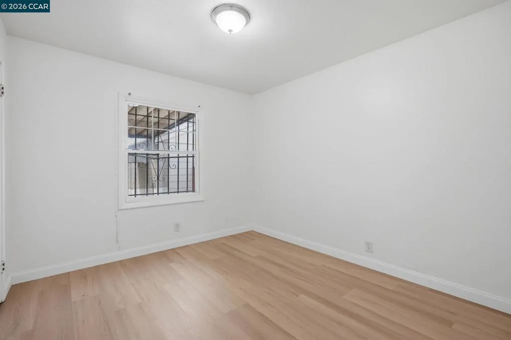 Welcome to this charming single-level home in Oakland offering 3 bedrooms and 1 bathroom with over 1,000 sq ft of comfortable living space. Recently refreshed with a freshly painted interior and brand new luxury vinyl plank flooring throughout the living areas, hallway, and bedrooms, this home is move-in ready. The updated kitchen features stainless steel appliances, ample cabinet space, and flows seamlessly into the main living areas, while the updated bathroom adds modern appeal. Step outside to a covered backyard patio and low-maintenance yard with plenty of potential to customize to your liking. A long driveway provides ample off-street parking and leads to a detached garage, ideal for storage or additional flexibility. Enjoy the benefit of fully owned, paid-off solar for energy efficiency and savings. Conveniently located just a block from Carter-Gilmore Park and Greenman Field, within walking distance to BART, close to the 880 Freeway, and only minutes from Oakland International Airport—perfect for commuters and travelers alike.