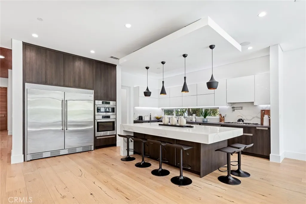 Uniquely designed modern architectural with stunning cutting-edge designer finishes available for short term lease! This completely rebuilt 1-story home with over 3,000 sq ft, 5 bedrooms and 3.5 bathrooms exhibits true attention to detail while offering distinctive bright and light-filled open floor plan. Gourmet custom Italian kitchen includes 66” professional fridge-freezer, range-top, dishwasher, and large island with waterfall quartz counters. Master suite with spa-like bath and large walk-in closet open to the amazing yard. A seamless combination of indoor-outdoor living makes this house an entertainer's dream. Large doors lead to tranquil backyard which boasts beautiful pool and spa, plenty of grassy yard and entertaining space with the utmost privacy. Other features include European oak floors fully furnished and designer lighting throughout, soaring 10 and 12 foot ceilings, alarm system, Close to shopping malls and restaurants If you are looking to enjoy the best of the California lifestyle, while just minutes away from shops and restaurants, movie theaters this home is a must see! Nearby attraction includes all the best LA activities within 10-15 minutes away..plenty of restaurants, movie theaters, gyms and much more!