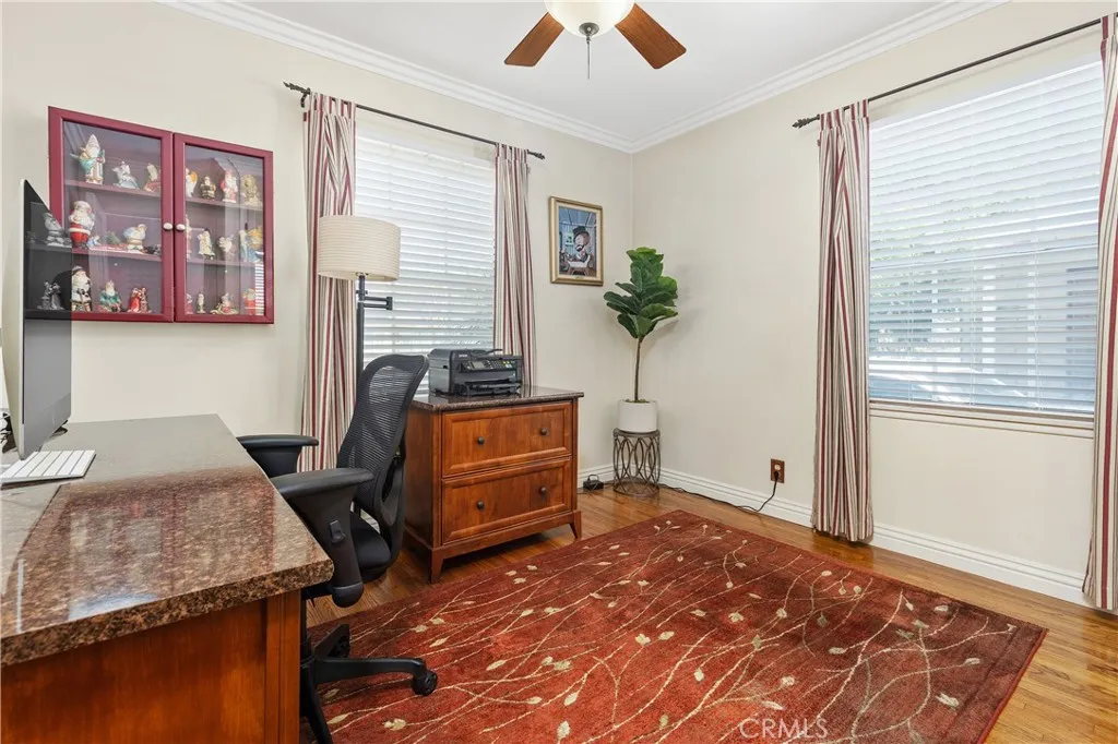 Model-perfect Lakewood home with beautiful curb appeal! A charming paver stone walkway leads to the inviting front porch overlooking the front yard. The light-filled living room features a large bay window and flows seamlessly into the dining area and updated kitchen, creating a warm and functional layout. The chef’s dream kitchen offers abundant cabinetry and counter space, a Thermador range, and stainless steel appliances—perfect for both everyday living and entertaining. A convenient service porch includes laundry and a utility sink. The spacious primary suite features a beautifully updated bathroom, while two additional bedrooms are nicely sized. The home also features a tastefully renovated hall bathroom, offering both style and functionality. This home is loaded with upgrades, including refinished hardwood floors, central heating and air conditioning, dual-pane windows, ceiling fans, crown molding, a newer roof (2024), rain gutters, and an automatic sprinkler system. Enjoy the park-like backyard with a paver stone patio and Alumawood patio cover—ideal for outdoor living. The property also features a 2-car detached garage and a long driveway with potential RV parking. Fantastic location close to parks, schools, shopping, and freeways. A must-see!