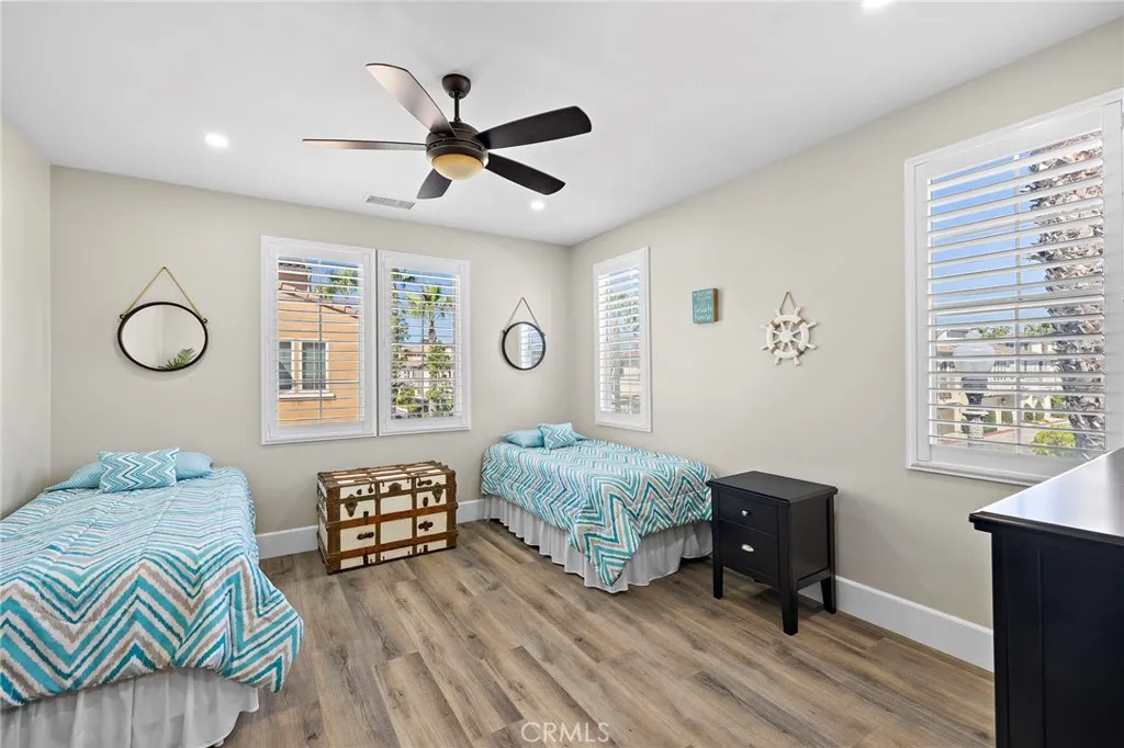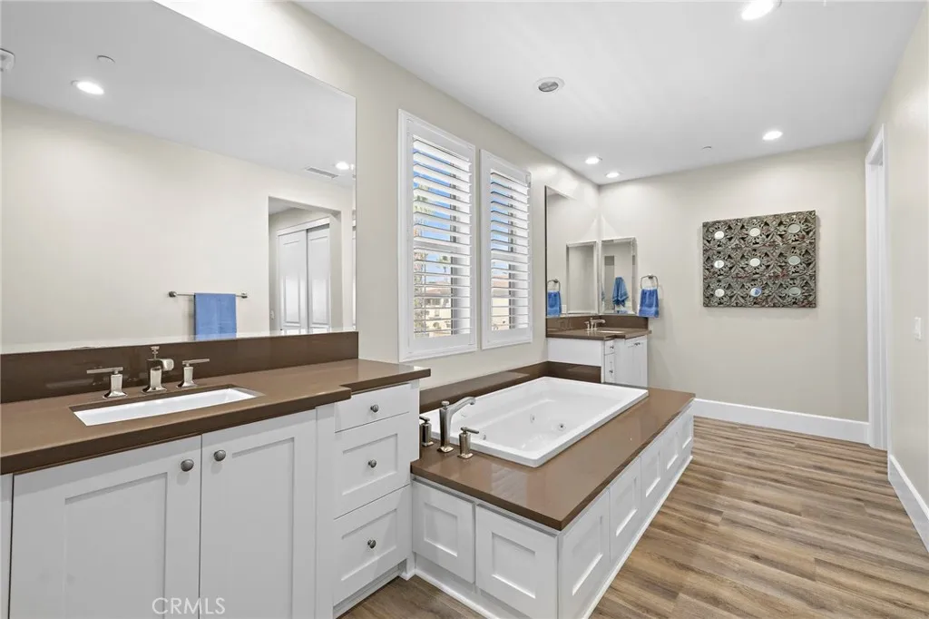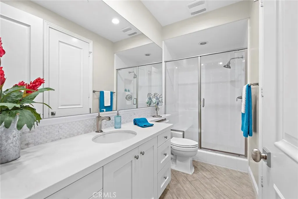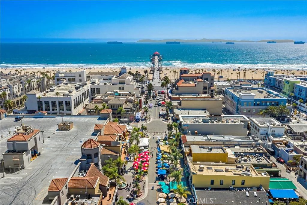Welcome to coastal luxury living in the highly sought-after Pacific Shores Villas, ideally located in the heart of Huntington Beach just two blocks from the sand. Perfectly positioned to enjoy the best of beachside living, this exceptional residence is within walking distance to Pacific City, premier restaurants, boutique shopping, and everything that makes Huntington Beach one of Southern California’s most desirable coastal destinations. This expansive 3,763 square foot corner home offers an ideal blend of sophistication and functionality, featuring five spacious bedrooms—each with its own en suite bathroom—including a highly desirable main-level bedroom perfect for guests or multi-generational living. Thoughtfully designed with both comfort and style in mind, the interior showcases luxury vinyl plank and wood tile flooring throughout, custom shiplap accents, and beautifully integrated built-ins that elevate both form and function. The open-concept layout is enhanced by a chef’s kitchen appointed with high-end appliances including a Wolf oven, complemented by a butler’s pantry for added convenience and seamless entertaining. A generous loft with built-in storage provides flexible living space, while the second-floor laundry room with sink adds everyday ease. Designed for long-term versatility, the home is prepped for a future elevator, with substantial storage space currently located beneath the stairs where installation can be accommodated. Indoor-outdoor living is effortless, with two balconies, two private patios, and a welcoming front courtyard entry—perfect for enjoying ocean breezes and coastal sunshine. The third-level bedroom offers a peek-a-boo ocean view, adding a subtle reminder of just how close you are to the water. Additional highlights include dual air conditioning units and an oversized three-car garage with extensive built-in storage. Situated within a gated community, residents enjoy beautifully maintained grounds with parks, greenbelts, and inviting spaces for outdoor enjoyment, all just steps from your front door. Whether you’re biking to the beach, walking to nearby dining, shopping, and entertainment, or simply enjoying the relaxed coastal lifestyle, this home captures the essence of living in the heart of Huntington Beach. A rare opportunity to own a truly exceptional property in one of the most coveted coastal communities—this is Southern California living at its finest. Welcome to Paradise!!!!