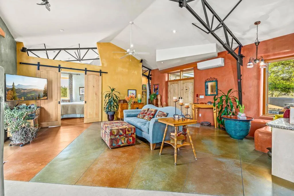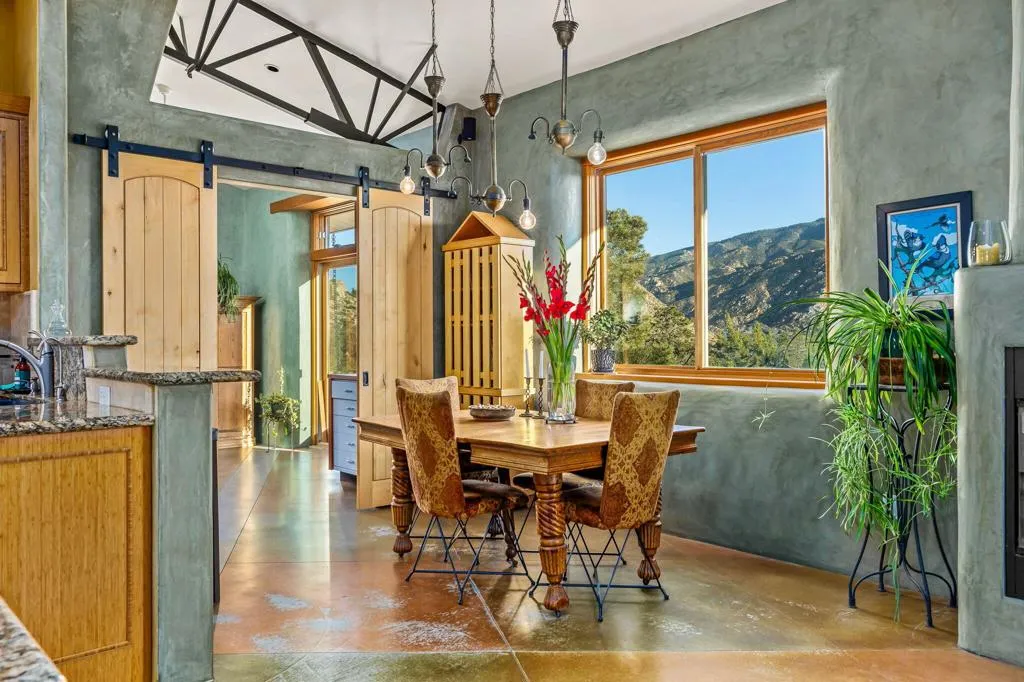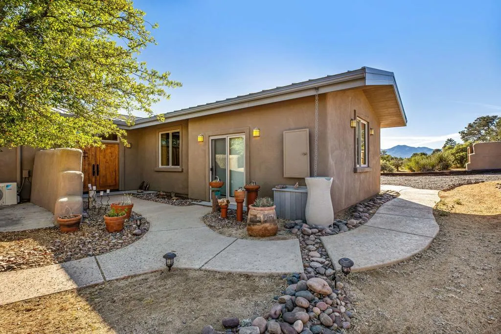 This custom home was designed and built, not assembled-crafted for exceptional privacy, longevity, and intentional living. Offering 3 bedrooms, 2 bathrooms, and a flexible bonus room, this thoughtfully designed retreat welcomes you with an open floor plan featuring exposed steel trusses and panoramic mountain views, filling the space with natural light. Backing directly to the National Forest, the home provides unobstructed views, exceptional privacy, and star-filled night skies permanently protected from any development. Enjoy both breathtaking sunrises and sunsets, along with peaceful moonrises and moonsets, all from the comfort of your own property. Experience a climate 15-20 degrees cooler than the desert, while still being approximately 20 minutes from El Paseo and the desert floor.Engineered for durability and efficiency, the home features exposed open web steel truss construction, approximately 2-foot-thick insulated walls, deep footings, and a standing seam metal roof, along with burnished limestone plaster walls and clear pine window and door casements that bring warmth and character. Designed for sustainable mountain living, the home incorporates passive solar design-capturing winter sun for natural warmth while staying cool in summer-paired with radiant heated concrete floors and impressive energy efficiency. Thoughtful enhancements include a whole house water softener system, reverse osmosis drinking water system, and a tankless instant hot water system.Outdoor and lifestyle features include paver stone multi-tiered patios and a welcoming front courtyard with a paved patio, creating ideal spaces for relaxing or entertaining while taking in the surrounding beauty. The property also offers a greenhouse for growing your own food, two garden sheds, a 5,000-gallon water tank, five water-collecting cisterns, and an HOA-approved fenced area for dogs, providing both sustainability and peace of mind. Step outside to scenic hiking and biking trails just beyond your doorstep, along with a peaceful labyrinth for reflection. Flexible spaces like the garage are ideal for a studio or workshop, making this home a true retreat for nature lovers, thinkers, creators, and those seeking a quieter way of life.This is a rare opportunity to own a home that is not only beautifully designed but intentionally built to last--schedule your private tour and experience the peace, craftsmanship, and lifestyle for yourself.