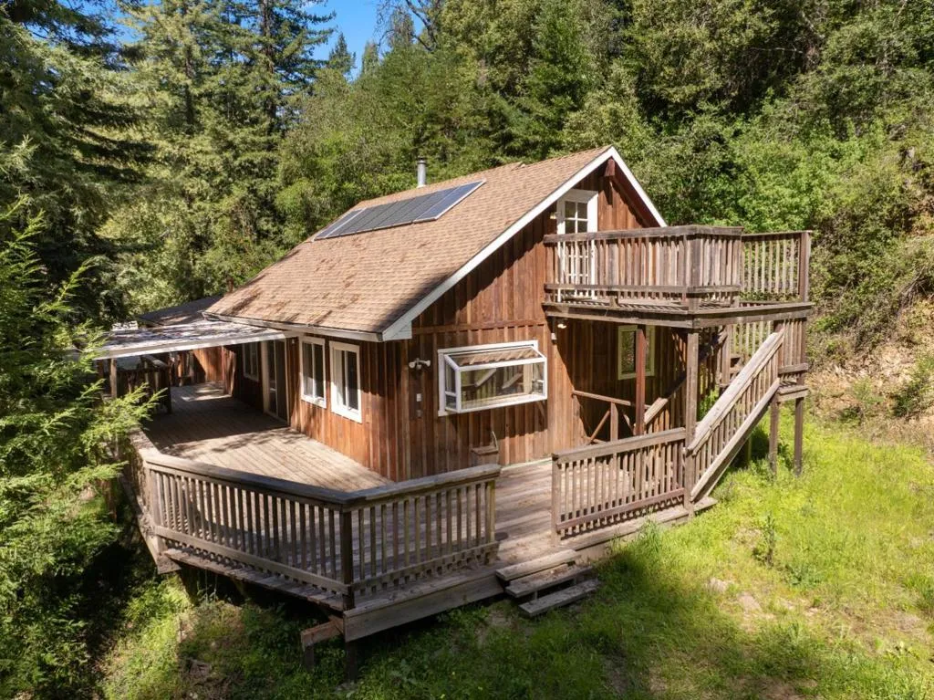 Set on 17 private acres in the Santa Cruz Mountains, this off grid 3 bed 2 bath retreat offers a rare blend of seclusion and accessibility, just 30 minutes from town and everyday conveniences. Designed for relaxed California living, the home features generous deck space ideal for outdoor dining, entertaining, or unwinding under the stars. A detached two car garage adds flexibility for storage or a workshop, perfect for hobbies like woodworking. Inside, recent upgrades include durable LVP flooring. The expansive land opens the door to a variety of uses, from horse property potential to creating your own network of trails for hiking, mountain biking, or ATV adventures. Properties like this are seldom available, offering a unique opportunity to enjoy privacy, space, and the outdoors right at your doorstep.