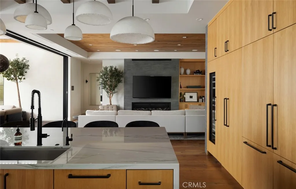 A disciplined expression of modern California architecture, this single-level residence—built in 2021 by Casa Arte Group—blends scale, materiality, and fully integrated technology into a turnkey living experience. Offered fully furnished, the home presents as a complete composition where design, function, and performance align. A quiet yet commanding entry opens into a voluminous great room defined by 11-foot ceilings and Warren Christopher wood flooring. Natural light moves intentionally through the space, reinforcing clean lines and an open layout that connects living, dining, and kitchen seamlessly. The kitchen is both sculptural and functional, anchored by Thermador smart appliances and designed as a central gathering point. It flows effortlessly into the surrounding living spaces, supporting both daily living and elevated entertaining. A fully owned 10.8kW SunPower solar system paired with four Tesla Powerwalls delivers energy independence, efficiency, and long-term value.The rear yard extends the architecture outdoors with a custom pool and spa, covered dining area, built-in barbecue, Restoration Hardware fire table, and StruXure motorized pergola with rain-sensing automation—creating a private, resort-caliber setting.The primary suite overlooks the yard and pool, offering a quiet retreat with a spa-inspired bath designed for comfort and simplicity. Three additional en-suite bedrooms provide privacy and flexibility for family or guests.Technology is seamlessly integrated, including a Unifi Enterprise network, Lutron RadioRA 3 lighting, whole-home Sonos audio, Ecobee climate control, Pentair smart pool system, and in-wall iPad control. Security features include 4K HDR cameras, smart doorbell, and Apple HomeKey entry. Additional features include Toto Neorest fixtures, dual Tesla chargers, 5.1 surround sound, whole-home water filtration, reverse osmosis system, infrared sauna, and organized garage. A rare, fully realized offering in Newport Beach.