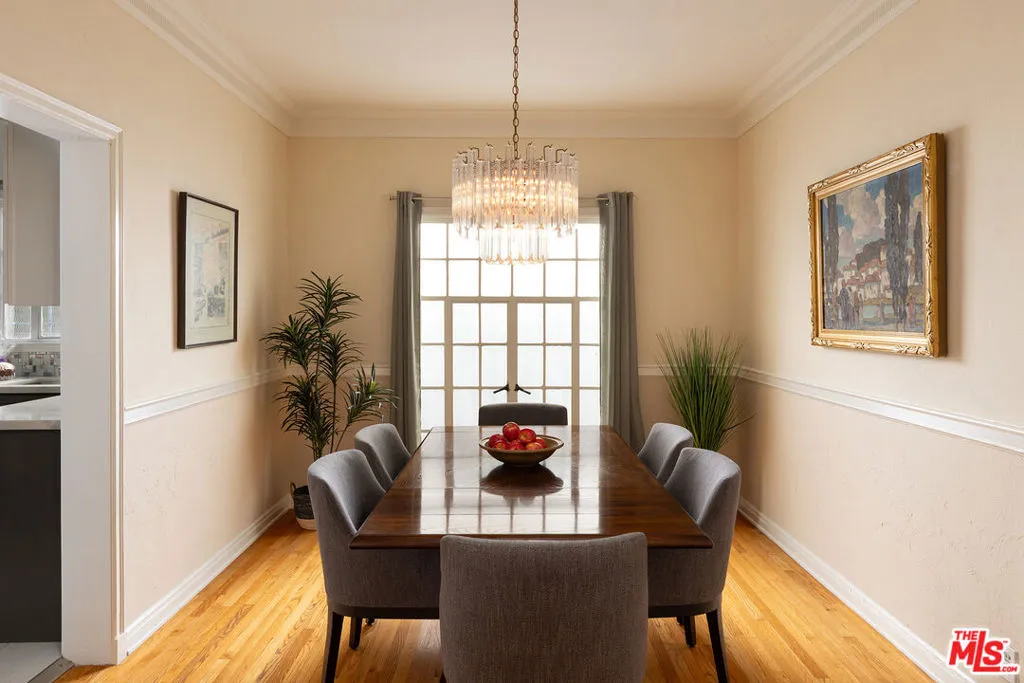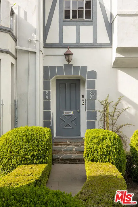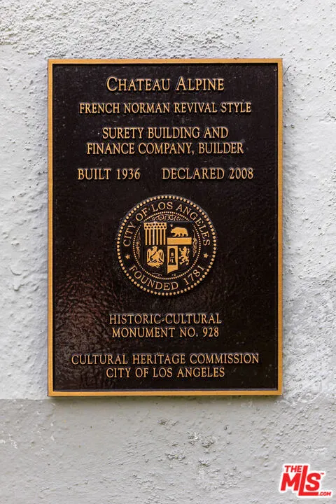 Welcome to Chateau Alpine, City of Los Angeles Cultural Historic Landmark #928. The topiary-lined walkway meanders through the central courtyard, inviting the visitor to slow down and absorb the dignified presence of the Norman Revival Architecture as they approach the unit. The complex was built in the waning years of the Great Depression, when even the best old-world craftsmen and high-quality building materials were plentiful and inexpensive. This allowed for a build quality at Chateau Alpine, both inside and out, that far surpasses today's building standards. Real lath-and-plaster walls enhance auditory privacy, while the living room's broken door pediment, dentilated crown moldings, and hardwood floors add a sense of genteel refinement. With the scale of the rooms and floorplan, 920 South Serrano lives more like a small house than a typical condominium.