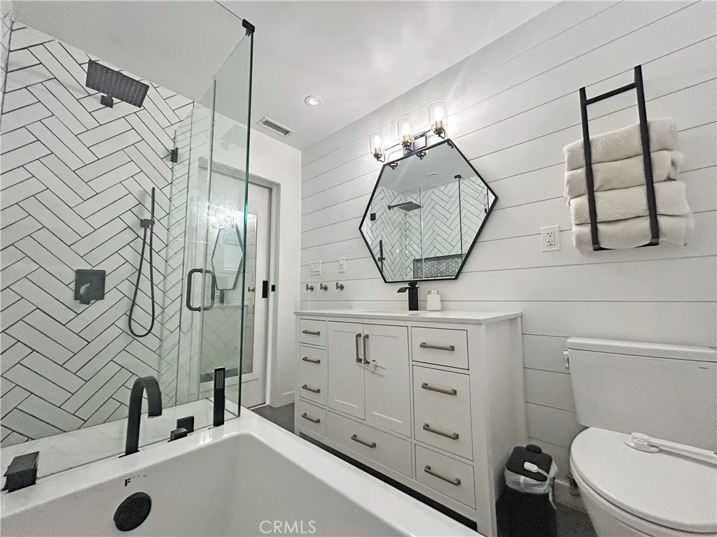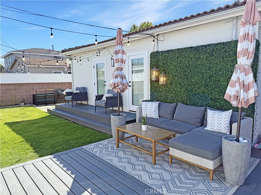 Step into a warm and inviting South Torrance home, thoughtfully upgraded for modern living and just moments from award-winning schools, Torrance Beach, Del Amo Fashion Center, and nearby park. Enter through charming blue Dutch door, set behind a private, enclosed front yard with grass and tucked away in a quiet residential neighborhood. Inside, the upgraded kitchen features waterfall quartz countertops, stainless steel appliances, and counter seating, ideal for everyday dining or hosting. Off the kitchen lies a versatile flex space that can be used as a sitting area, dining room, playroom, or home office. Sliding glass doors lead to a covered patio strung with café lights and outfitted with swings, perfect for relaxing or entertaining. The backyard is a fully loaded entertainer’s dream, showcasing a brand-new, top-of-the-line outdoor kitchen complete with BBQ, sink, burners, refrigerator, and ice machine. A grassy lawn and a newly built deck provide the perfect setup for lounging or dining al fresco. Inside, the sunlit living room features a stylish stone fireplace and overlooks the manicured front yard. The home includes upgraded bathrooms, one of which offers a separate tub and tiled shower, a quartz vanity, and sleek black fixtures. All bedrooms offer direct access to the backyard—ideal for embracing the indoor-outdoor California lifestyle. The garage has been fully transformed into a versatile bonus space, complete with a second kitchen setup, laminate floors, and laundry area—perfect for a home office, studio, or play area. Additional upgrades include solar panels for reduced electricity bills, tankless water heater, and AC.