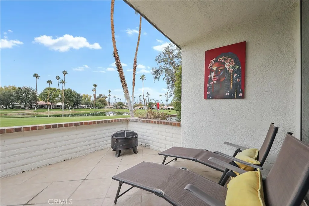 Location. Location.Location. Ideally located near the main entrance of the community, this beautifully updated condo offers an open floor plan and exceptional views of the mountains, golf course, and water fountains. The property is sold fully furnished and is truly turnkey, making it ideal as a full-time residence, vacation home, or investment property. The interior features luxury vinyl flooring throughout, a modern upgraded kitchen, and a fully renovated primary bathroom. The spacious layout provides privacy between both bedrooms, with the primary suite offering plenty of closet space, an ensuite bathroom and access to golf course side patio. The main living area is bright and open, creating a comfortable and functional flow throughout the home. Additional features include an attached 2-car garage and a prime location within the community, close to the main entrance for easy access. Residents enjoy a well-maintained neighborhood with beautifully landscaped grounds, golf course views, and peaceful water features. Conveniently located within walking distance to The River Mall, the Omni Resort Hotel & Spa, dining, shopping, and entertainment, this property combines location, comfort, and a turnkey lifestyle in the heart of Rancho Mirage.