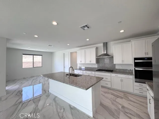 Welcome to this stunning 5 bedroom, 3 bathroom home located in the gated Menifee community of Meadows at Cimarron Ridge. Thoughtfully designed and just built, this expansive two story residence perfectly blends comfort, functionality, and modern style, ideal for growing families or those who love to entertain. Enter inside to a bright, open floor plan featuring elegant marble flooring throughout the main level. The spacious kitchen flows seamlessly into the dining area and family room, creating a warm and inviting atmosphere. The kitchen is equipped with a walk-in pantry for ample storage and is perfectly positioned for both everyday living and hosting gatherings. Just off the kitchen, you’ll find a generously sized laundry room for added convenience. The main floor also boasts a luxurious primary suite, complete with a spa like ensuite bathroom featuring dual sinks, a soaking tub, walk-in shower, and an oversized walk-in closet. An additional bedroom and full bathroom are also located on the first floor, ideal for guests or a home office. Upstairs, a large loft offers a flexible second living area, perfect as a media room, play space, or home office. The additional bedrooms are spacious and thoughtfully separated for privacy and comfort. The 3 car garage provides plenty of storage, and with included solar, you’ll benefit from energy efficiency and cost savings. Venture outside to a beautifully landscaped backyard oasis featuring a covered patio, large turf area, a putting green, and a built-in BBQ space currently in progress making perfect for year-round relaxation and entertaining. Conveniently located just minutes from the 15 and 215 freeways, this home offers quick access to shopping, dining, schools, hospitals, and more. Don’t miss your chance to own this incredible home, schedule your private tour today!