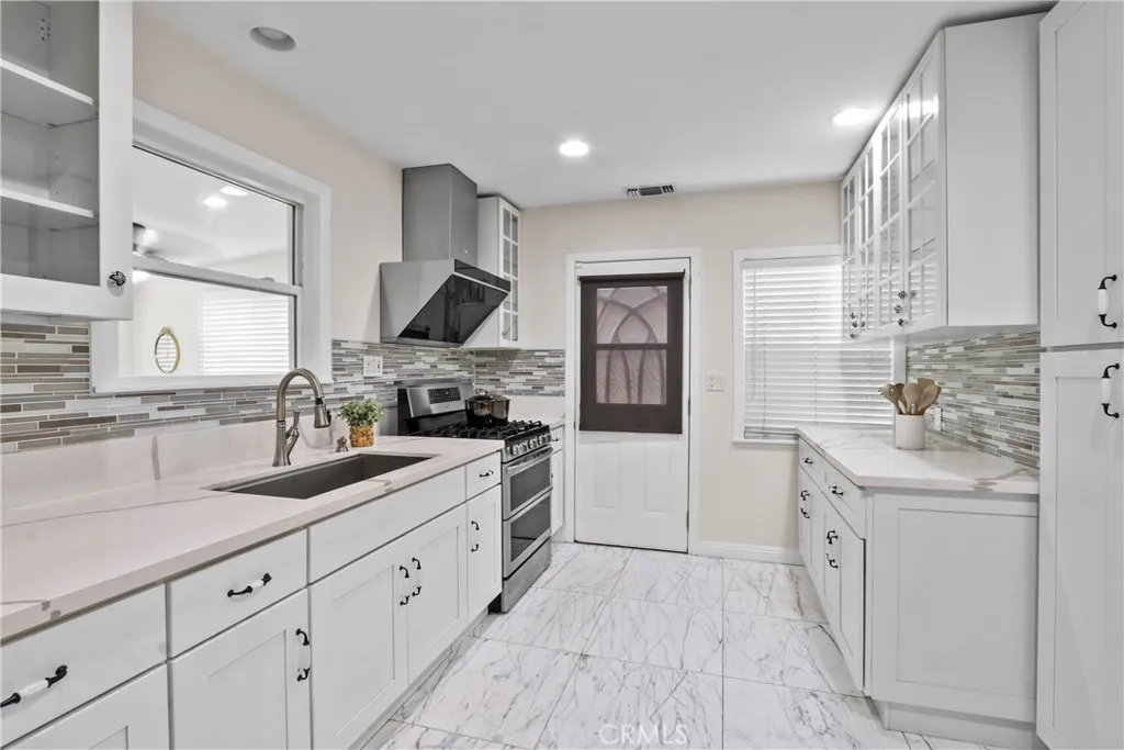 Welcome to 9558 Bert St in Pico Rivera. This 2 bed, 1 bath home lives like a 3 bed, 2 bath thanks to a finished enclosed patio that adds a great extension of the living space—perfect for a family room, guest area, or home office. The layout is open and inviting, with wood floors throughout, recessed lighting, and lots of natural light from upgraded vinyl windows. The kitchen has been nicely updated with white cabinetry, quartz countertops, stainless steel appliances, and a peninsula that works great for everyday dining or entertaining. The bathroom has been remodeled with marble flooring and a marble shower, giving it a clean, elevated feel. Out back, you’ll find a really great yard with multiple mature fruit trees and plenty of space to enjoy. There’s also a 2-car attached garage that includes laundry hookups. The Gorgeous Front Yard features huge driveway perfect for multiple cars and has so much space to play or entertain.