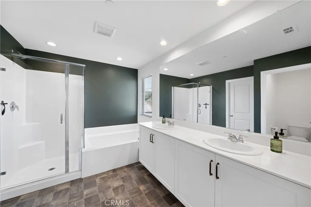 Welcome To This Beautifully Designed New Construction Home Located In The Desirable Pathway At Cimarron Ridge Community In Menifee. Built In 2025, This Spacious Two Story Residence Offers Approximately 2,824 Square Feet Of Living Space With Five Bedrooms And Three Full Bathrooms, Providing A Flexible And Functional Layout Ideal For Modern Living. Step Inside To A Light And Bright Open Concept Floor Plan Featuring Nine Foot Ceilings, Vinyl Flooring In Main Living Areas, And Plush Carpet In Bedrooms. The Expansive Great Room Flows Seamlessly Into The Gourmet Kitchen, Creating The Perfect Space For Both Everyday Living And Entertaining. The Kitchen Showcases White Shaker Cabinetry With Adjustable Shelving, Granite Slab Countertops With Full Backsplash, Stainless Steel Appliances Including A Four Burner Gas Range With Microwave Hood, Dishwasher, And Spacious Pantry Storage. A Downstairs Bedroom And Full Bathroom Offer Convenience For Guests Or Multi Generational Living. Upstairs, The Private Primary Suite Features A Spacious Layout With Dual Sinks, Elegant Countertops, Separate Tub And Shower, And A Large Walk In Closet. Additional Bedrooms Are Generously Sized With Easy Access To Well Appointed Bathrooms. A Flexible Upper Level Layout Provides Opportunity For A Loft Or Additional Living Space Depending On The Floor Plan. This Energy Efficient Home Includes Dual Glazed Windows, High Performance Insulation, Tankless Style Water Heating, Central HVAC System, LED Lighting Throughout, And Smart Home Features Including A Video Doorbell, WiFi Programmable Thermostat, And USB Charging Outlets. Additional Highlights Include A Fire Sprinkler System, Smoke And Carbon Monoxide Detectors, And Pre Wiring For Future Technology Needs. The Exterior Offers Durable Stucco Construction, Concrete Tile Roofing, Professionally Designed Drought Tolerant Landscaping, And A Two Car Attached Garage With Automatic Opener. The Spacious Backyard Provides A Blank Canvas For Outdoor Living, Entertaining, Or Future Customization. Ideally Located Near Shopping, Dining, And Easy Freeway Access, This Home Offers The Perfect Combination Of Modern Design, Energy Efficiency, And Everyday Comfort In One Of Menifee’s Growing New Communities.