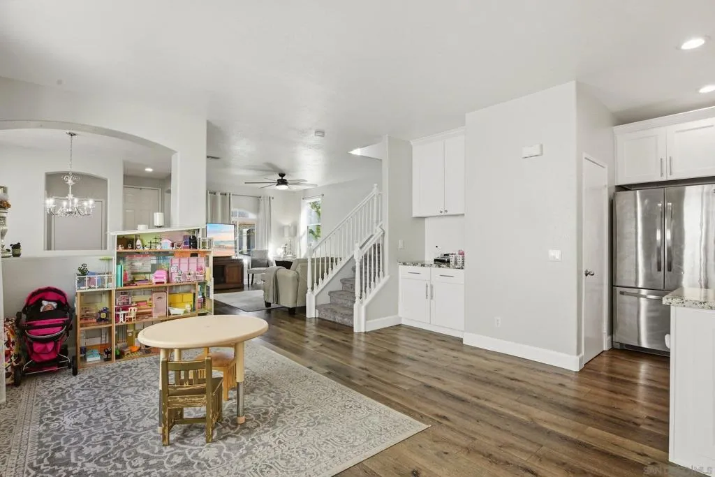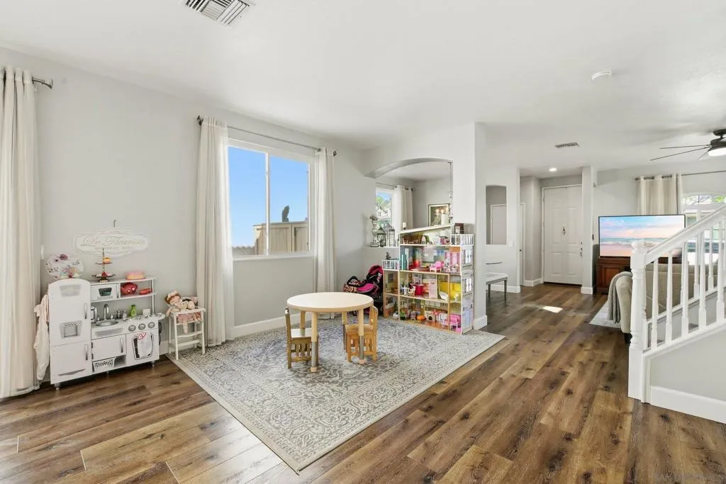 Do not miss this updated 4-bedroom home in Otay Ranch. Located in a quiet neighborhood, this move-in-ready home offers a spacious layout, abundant natural light, and thoughtful upgrades throughout. Improvements include new dual-pane windows throughout the home, soundproof windows in the primary bedroom, new flooring downstairs, a remodeled kitchen, a newer HVAC system (approx 5 years old), a new water heater, and more. The first floor features a spacious and functional layout with a living room, dining room, and family room that opens to the remodeled kitchen and breakfast nook. The kitchen has been updated with white shaker cabinets, quartz countertops, stainless steel appliances, and a walk-in pantry. Also on the main level are a half bath, attached 2-car garage, and a low-maintenance backyard designed for easy outdoor living. Upstairs, you’ll find the primary suite with a walk-in closet and an en suite bathroom with dual sinks. Three additional bedrooms and one full bathroom complete the second floor. Residents enjoy access to community amenities, including a swimming pool, clubhouse, playgrounds, parks, BBQ area, and basketball court. Conveniently located near schools, shopping, dining, and everyday services, this home is a great opportunity for buyers seeking space, updates, and a desirable Otay Ranch location.