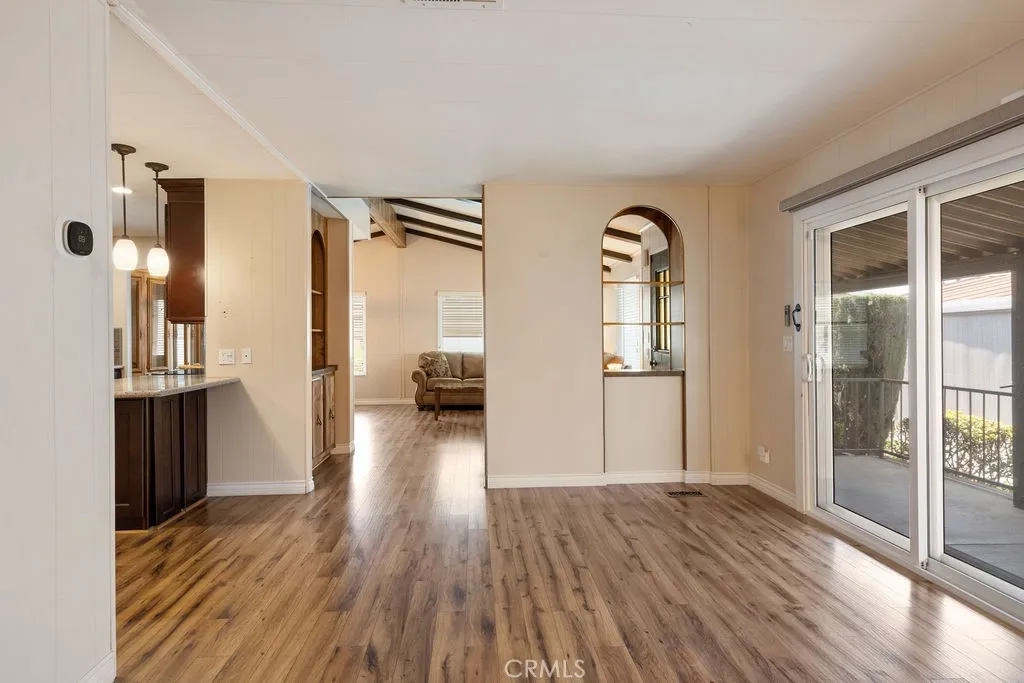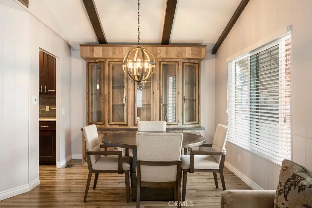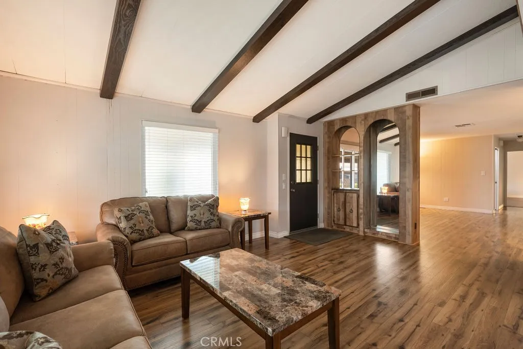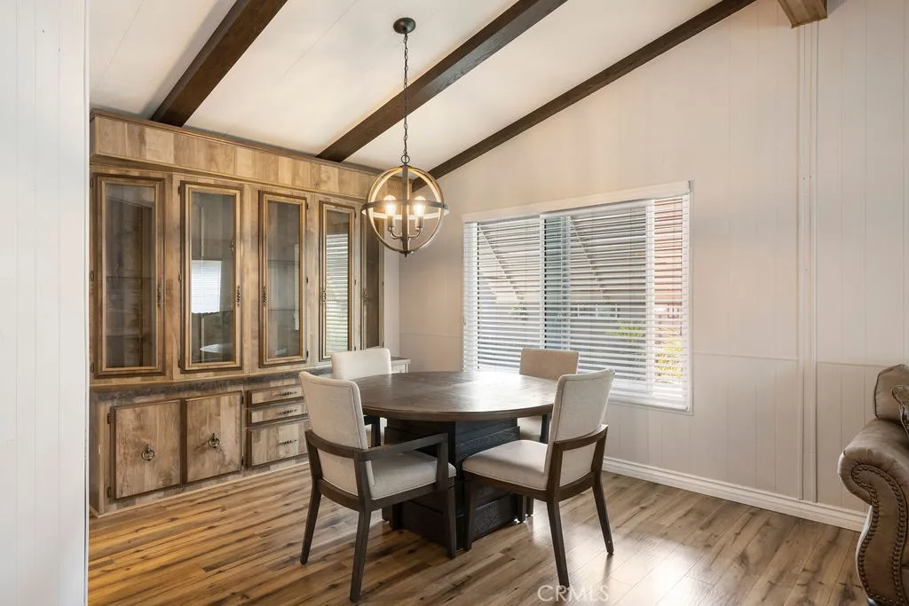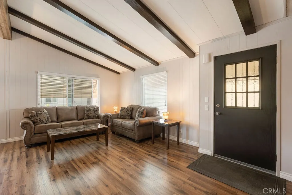 Welcome to the highly sought-after Lake Park Brea 55+ community! This beautifully maintained home reflects true pride of ownership from the moment you enter. The spacious living room features open beamed ceilings, new wood laminate flooring, updated baseboards, and an abundance of natural light. It flows seamlessly into the dining area, complete with a built-in hutch offering ample storage, and a wheelchair lift for the entryway and ADA upgrades inside! Around the corner, you’ll find a stunningly remodeled kitchen boasting new soft close cabinetry, recessed lighting, granite countertops with tile backsplash, stainless steel appliances, and stylish pendant lighting over a cozy eat-in bar. Adjacent to the kitchen is a convenient laundry room with a sink and additional storage. The kitchen also opens to a generously sized family room with a new dual pane sliding glass door leading to a large covered patio, perfect for relaxing in privacy on cool evenings. The primary suite includes a walk-in closet with mirrored doors and plenty of storage, along with an en-suite bathroom featuring a soaking tub, separate shower, and dual sinks. A well sized second bedroom and full bathroom provide comfortable accommodations for guests. Additional upgrades include new blinds throughout, fresh interior paint, and newer major systems, including the roof, HVAC, and kitchen updates completed within the past few years. Residents enjoy resort-style amenities such as a pool, spa, clubhouse, fishing lake, tennis court, fitness center, and beautifully maintained greenbelts. Don’t miss the opportunity to see this exceptional home in person!