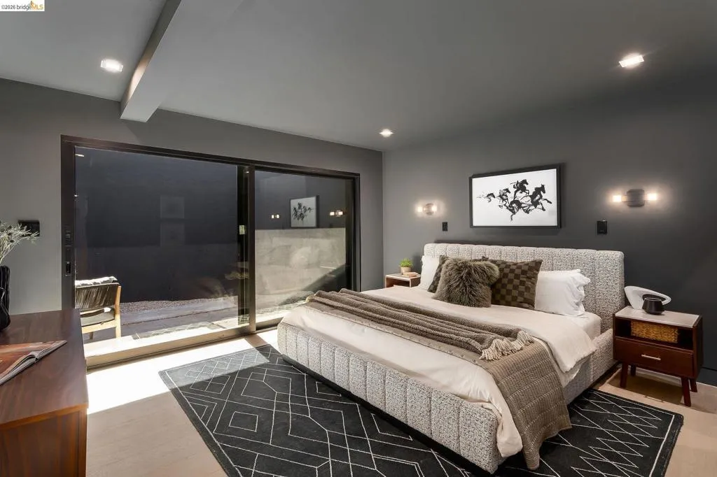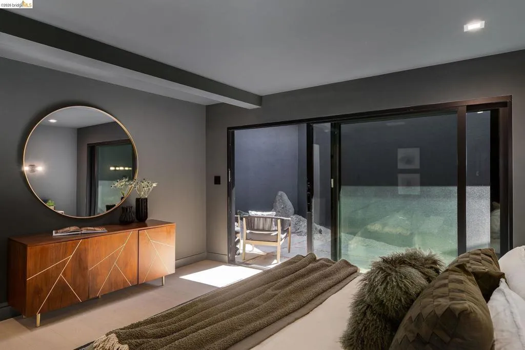 A truly rare offering, 5645 Bacon Road is a one level-brand new modern estate of exceptional scale, glamour, and architectural presence. This one of a kind single level residence features 6 luxurious bedrooms, each with its own ensuite full bath, plus 2 half baths. Soaring 12 foot ceilings, expansive light filled spaces, and a dramatic 10 by 20 glass sliding door create a seamless indoor outdoor lifestyle. Designed for both grand entertaining and elevated daily living, the home offers an oversized living room, private office, gym, cigar lounge, and a stunning chef’s kitchen with Wolf and Sub Zero appliances, complemented by a secondary prep kitchen. Outdoors, enjoy an oversized pool, a pool house with full kitchen, a second pool house with full bath, level grounds, multi car garage, and a motorized gated entrance framed by olive trees. Sleek, grand, and unforgettable, this exclusive new construction is a once in a lifetime opportunity and one of the most spectacular modern homes to come to market in Oakland in years.