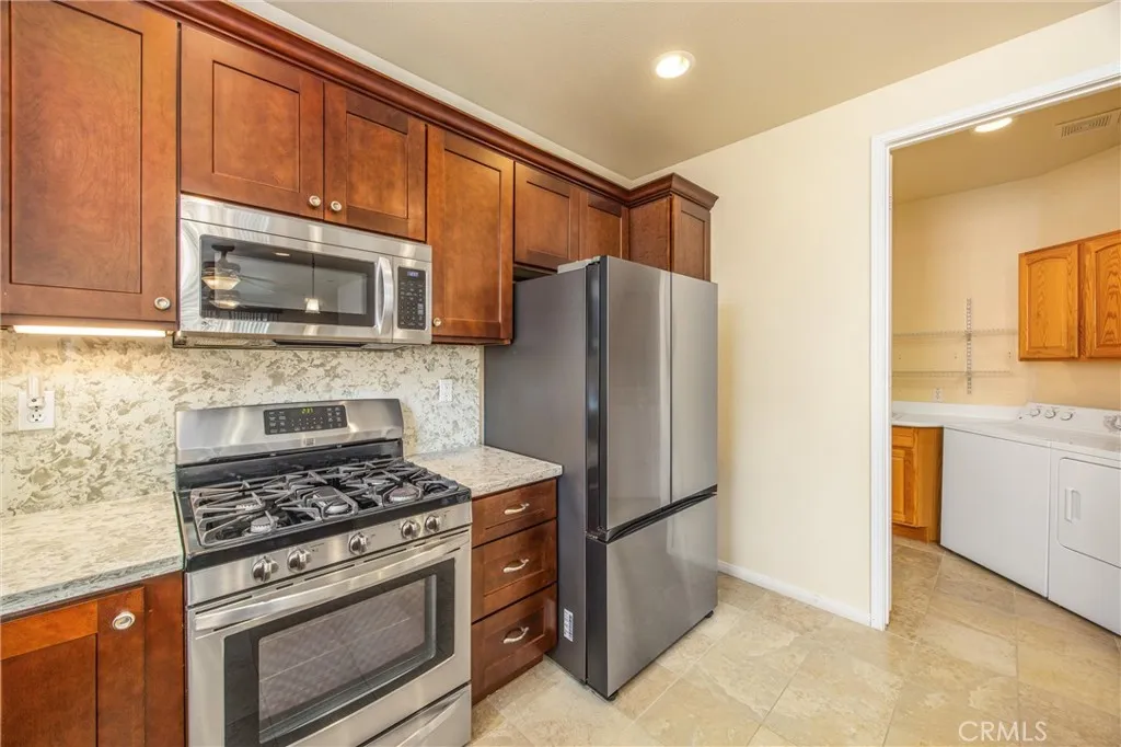 Welcome to resort-style living in the highly sought-after 55+ community of Solera at Oak Valley Greens—where comfort, elegance, and active living come together. This beautifully upgraded 2-bedroom, 2-bath home with a versatile den offers the perfect blend of style and functionality. The thoughtfully designed interior features marble countertops, newer stainless-steel appliances, and a fully upgraded kitchen ideal for both everyday living and entertaining. Enjoy tile flooring throughout main living areas, complemented by newer carpet in the bedrooms for added comfort. The spacious primary suite boasts an updated bathroom with a stunning walk-in shower. Additional highlights include a newer HVAC system, along with recent exterior paint and newer gutters for peace of mind. Step outside to your beautifully maintained backyard, complete with mature trees and fruit trees, offering privacy and a serene outdoor setting perfect for relaxing or hosting guests. Residents of Solera enjoy a guard-gated, resort-style community featuring an impressive clubhouse, fitness center, pool and spa, walking trails, tennis and bocce courts, and a full calendar of social activities and clubs designed for an active adult lifestyle. The community is ideally located near the Oak Valley Greens Golf Course, shopping, dining, and easy freeway access, making it convenient for both daily living and weekend getaways. With beautiful mountain views and a slightly higher elevation, residents benefit from cooler temperatures and a peaceful environment while still being within reach of major Southern California destinations. This is more than just a home—it’s a lifestyle. Don’t miss your opportunity to live in one of Beaumont’s premier active adult communities.