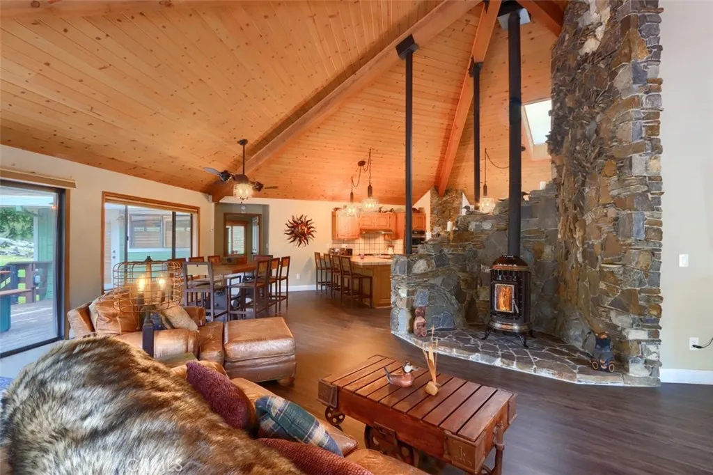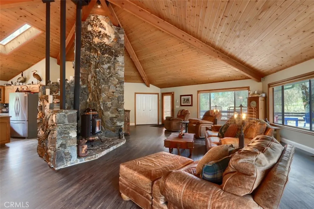 Nestled on over 10 private acres in Ahwahnee, this stunning custom-built 3-bedroom, 2-bath, 2,600 sq ft home offers a rare blend of natural beauty,, privacy, and comfort. Perfectly positioned at the end of a quiet cul-de-sac, the property is bordered by the scenic Fresno River on one side and the peaceful River Creek Golf Course on the other. The grounds are beautifully manicured, featuring mature trees, stricking rock outcroppings, and even your own private beach area along the river--creating a truly serene tretreat. A detached shop and RV parking with full hook-ups add both conveneince and versatility. Inside, the home showcases warm, rustic elegance with tongue-and-groove beamed ceilings and a stunning custom rock hearth as a focal point. The spacious kitchen is designed for both function and gathering, featuring a large center island and counter seating area. Step outside onto the expansive deck, complete with a relaxing spa, where you can take in breathtaking views of the river and surrounding mountain range. Ideally located just under 10 minutes from shopping and amenities in Oakhurst, this home also offers easy access to outdoor recreation--only 20 minutes to Bass Lake and approximately 40 minutes to the entrance of Yosemite National Park. This is more than a home--it's a private mountain sanctuary where nature, comfort, and convenience come together.