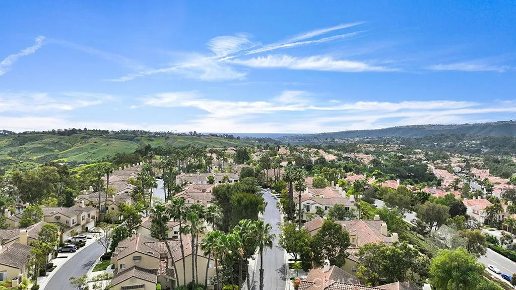 Situated in the highly sought-after Encore at Marina Hills, this end-unit residence offers an exceptional blend of location, livability, and opportunity within one of Laguna Niguel’s most desirable communities! Featuring 3 bedrooms and 3 bathrooms across a well-designed two-story floor plan, the home includes a highly desirable main-level bedroom and full bath – ideal for guests, a home office, or flexible living. The spacious living room is enhanced by soaring vaulted ceilings, creating a light and open atmosphere, and flows seamlessly to the kitchen and spacious back patio overlooking mature trees and lush greenery. An oversized attached two-car garage provides ample storage with cabinets and overhead racks, and the highly desirable end unit offers added privacy and natural light. Upstairs, two generously sized bedroom suites provide comfort and privacy, including a primary suite with vaulted ceilings, dual vanities, and a private balcony nestled among the trees, offering a peaceful and secluded retreat. Thoughtfully maintained and move-in ready, this townhome is a fantastic opportunity and price for a 3-bedroom home in Laguna Niguel just minutes away from the beach, shopping, dining, hiking and biking trails and all that beautiful South OC has to offer. Residents of Marina Hills enjoy access to resort-style amenities including a pool and spa, tennis and pickleball courts, parks, playgrounds, and scenic walking paths—all within a vibrant, coastal-close community.