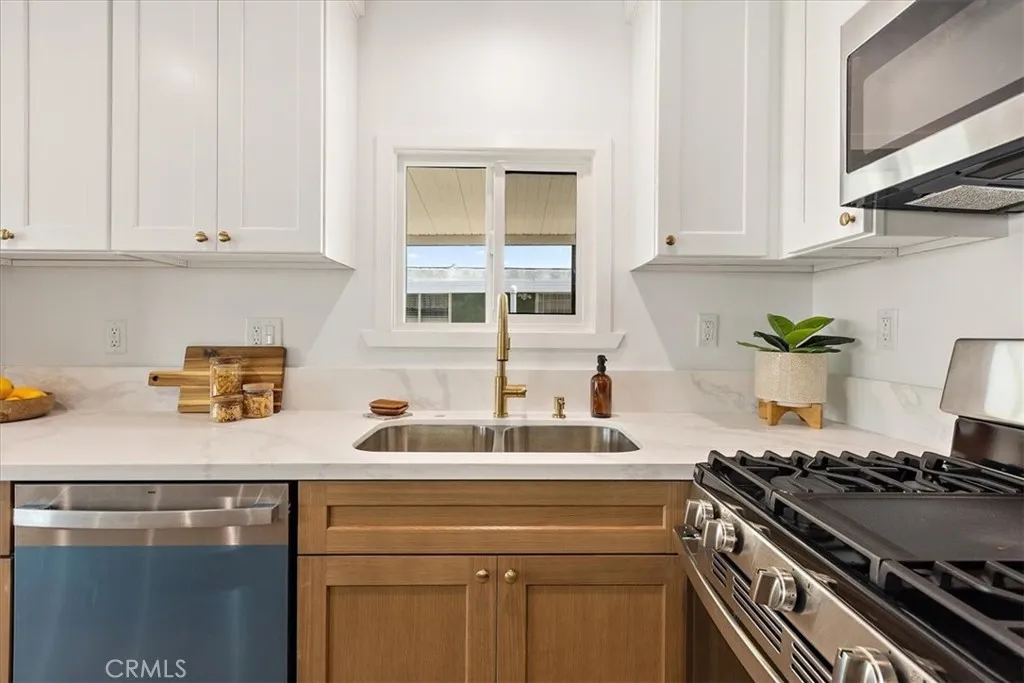 Welcome to Friendly Village, a highly desirable 55+ mobile home park in the city of La Habra. This 2 bedroom 2 bathroom home has been fully remodeled. On the exterior, a 2 car covered carport, a detached storage shed. New double pane windows, new paint, new carpet on the covered patio entrance and low maintenance landscape. On the interior, a modern and spacious open concept. Upgrades include, new laminate flooring, new drywall on the ceiling, new recessed lights, new kitchen cabinets and countertops, 2 fully remodeled bathrooms, all new fixtures and new plumbing. Interior features include washer and dryer hook hooks, central AC/Heating, a spacious master bedroom, with walk in closet and private bathroom. Best of all this home comes with a brand new fridge, dishwasher, stove, microwave, washer and dryer! In addition, this community offers an array of amenities for residents to enjoy. A gated pool and spa, golf putting green, fenced dog area, spacious clubhouse, fitness room, game room, library. Centrally located near shopping centers, Costco and restaurants.