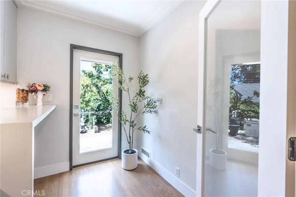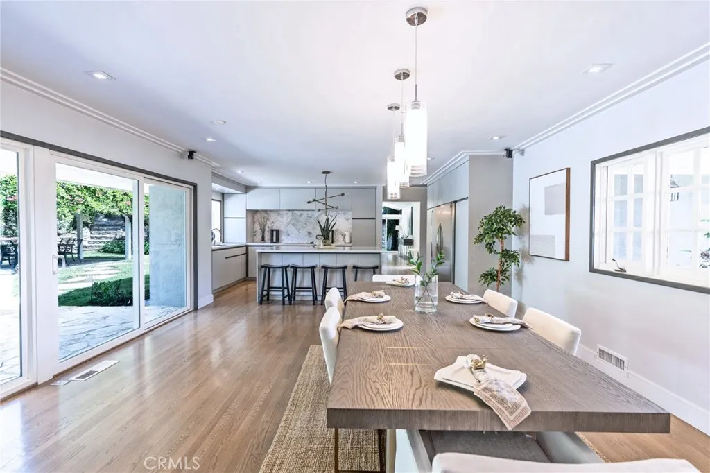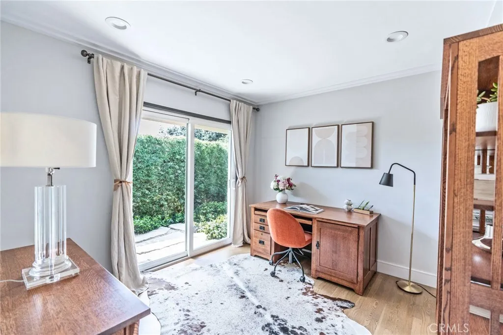 Tucked away on a serene cul-de-sac in Pasadena's coveted Eaton Canyon neighborhood, this beautifully renovated home sits on nearly half an acre of meticulously landscaped grounds — offering the rare combination of total privacy and effortless indoor-outdoor living. With a custom solid-wood entry door and walls of glass that draw the lush surroundings — mature trees, manicured hedges, and mountain views — seamlessly inside, the home makes an immediate impression. The vaulted living room anchors the home with a dramatic concrete fireplace, while the open-concept great room flows into a well-appointed kitchen featuring stainless steel appliances, a panel-ready double refrigerator, flat-panel cabinetry, purified water, and an oversized quartz island. A formal dining area with dual wine coolers completes the space. The home offers three bedrooms, three baths, and a sun-filled office that easily serves as a fourth bedroom. The primary suite features dual vanities, a generous walk-in shower, and direct pool access. A second bedroom enjoys its own dual-sink bath. Outside, the terraced backyard is an entertainer's dream: flagstone patios, built-in BBQ, wet bar, flat lawn, fruit trees, a basketball court, and a gated pool and spa — all wrapped in exceptional privacy. Additional highlights include a three-zone HVAC system, dedicated laundry room, and abundant storage throughout. Turnkey and move-in ready, with easy access to shopping, dining, and major freeways — this is Pasadena living at its finest.