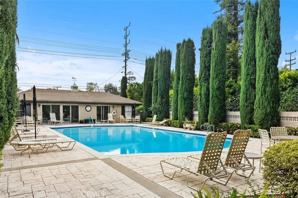 Location, Location, Location! This Mid-Century Modern condo is located in a highly desirable area of Pasadena. The home offers two well-sized bedrooms and two bathrooms. Spacious living room flows seamlessly into an open family area featuring a multi-sided gas fireplace and a separate dining space. Hardwood floors, built-in cabinetry, recessed lighting, and expansive glass patio doors create an inviting indoor-outdoor atmosphere. The updated kitchen includes stainless steel appliances and granite countertops. The primary suite features two separate closets and sliding doors leading to a charming private patio retreat. The main bathroom offers a generous spa tub, a relaxing shower, and dual sinks with plentiful counter space. The secondary bedroom works beautifully as a guest room or home office. Additional conveniences include two dedicated parking spaces–one covered–as well as a clubhouse with a full kitchen and gorgeous pool within this gated community. HOA dues include water, trash, and earthquake insurance. Easy access to freeways, close to downtown and Old Town Pasadena. Ready to move in!