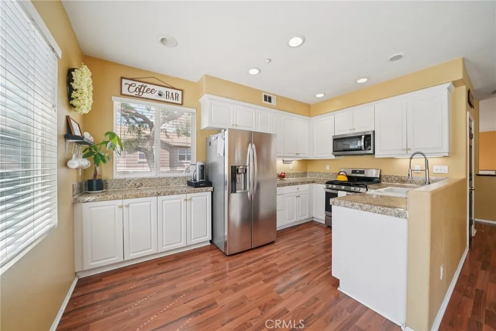 Welcome to Willow Haven, a sought-after gated community offering comfort, privacy, and convenience. This desirable end-unit condo features a rare private backyard and a spacious, thoughtfully designed tri-level floorplan with 1,976 sq ft of living space. Boasting 3 full bedrooms plus a versatile office and 3.5 bathrooms, this home offers flexibility for modern living. The downstairs office includes its own full bath, making it ideal for guests or easily convertible into a fourth bedroom. The main living area is filled with natural light and features French doors that open to a private side yard—perfect for entertaining, relaxing, or enjoying indoor-outdoor living. A formal dining room adds a touch of sophistication for gatherings. Next level up features an open-concept great room with a cozy fireplace that flows seamlessly into the kitchen, which is appointed with granite countertops, abundant cabinetry, and plenty of windows providing natural light. The top level hosts all three bedrooms along with a convenient laundry area. The spacious primary suite offers a true retreat with a large ensuite bathroom and a walk-in closet. Residents of Willow Haven enjoy resort-style amenities including a sparkling pool and spa, and playground. Ideally located near the 215 freeway, Loma Linda and Kaiser hospitals, and Mt. San Jacinto Community College, and also offers easy access to Temecula’s renowned wineries, shopping, and dining. Don’t miss this exceptional opportunity to own a private, end-unit home in a prime location!