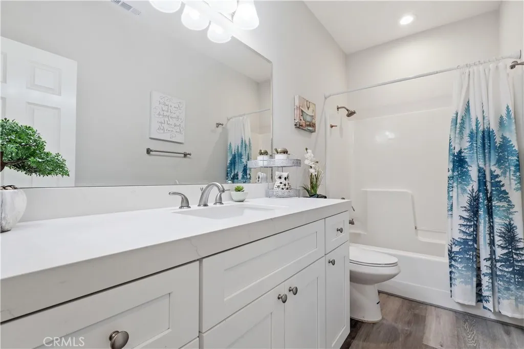 Newly built in 2022, this exceptional residence offers modern convenience and comfort with a Tesla 240V charger, a spacious driveway, and a pet-friendly setting complemented by a generous backyard featuring a gazebo- perfect for hosting guests, entertaining, or enjoying everyday gatherings. This single-story residence features 9-foot ceilings, exquisite vinyl flooring, energy-efficient UV-blocking windows throughout to help reduce heat, a newly installed vinyl fence/gate, a tankless water heater, and a dedicated laundry room with ample cabinetry and an additional pantry providing exceptional convenience and storage. At the heart of the kitchen, an impressive 8-foot quartz island with built-in cabinetry and integrated outlets takes center stage, paired with stainless steel appliances, soft-close drawers, and recessed lighting giving off a modern appeal. All three bedrooms mirror each other with modern ceiling fans, while the primary suite stands out by offering a walk-in closet and a walk-in shower, with the secondary bathroom providing the comfort of a full bath with a tub. Just a stone throws away from the 91 Freeway, Galleria at Tyler, gas stations, banks, and everyday essentials, this newer residence offers modern design paired with exceptional accessibility to daily conveniences.