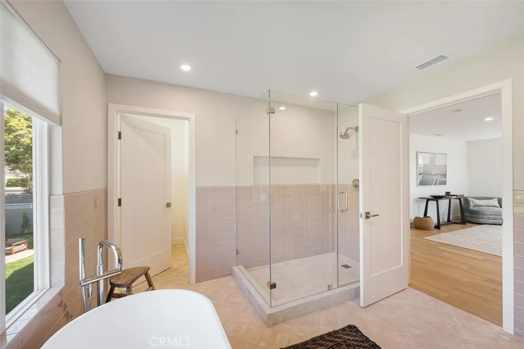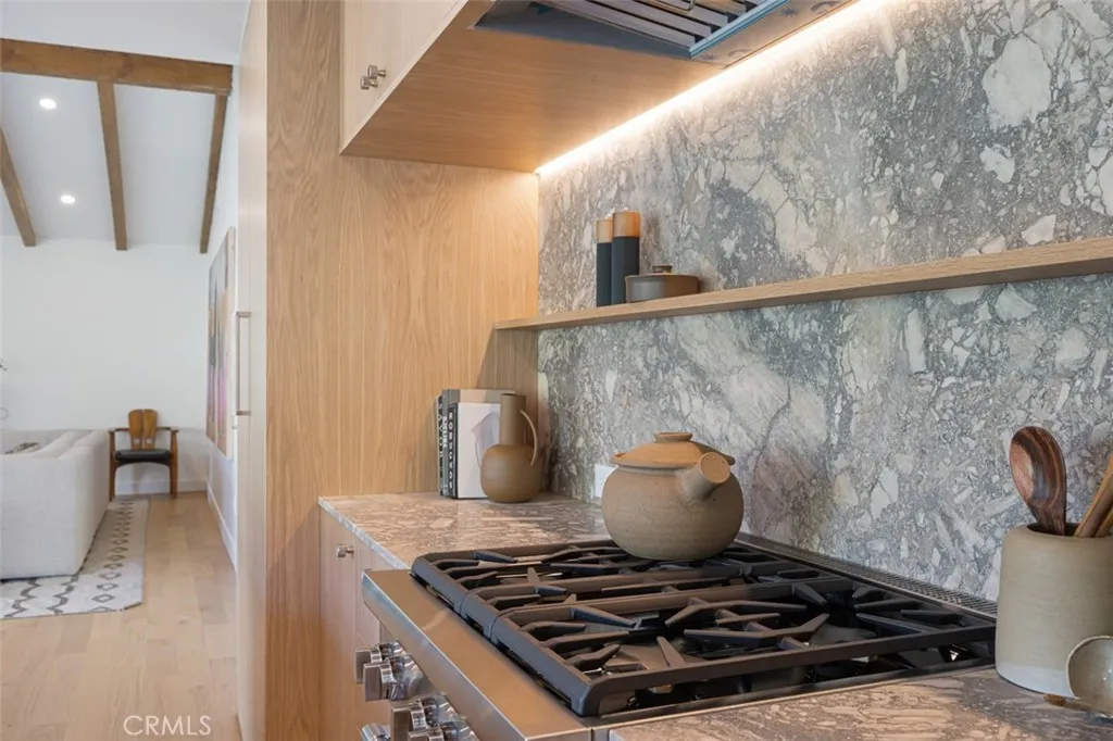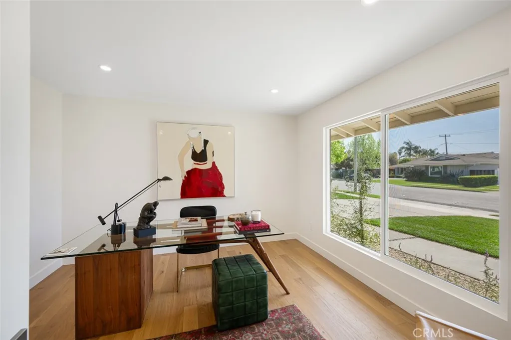 Completely reimagined and thoughtfully reconfigured, this stunning residence designed and curated by Acre Homes brings a refined mid-century modern touch to Costa Mesa. Every detail has been carefully thought out to deliver both style and functionality in one of Mesa Verde's most desirable neighborhoods in the inner loop. Set on an oversized 8,100 square foot lot, the home features a highly versatile downstairs in-law suite complete with its own ensuite bath—perfect for guests, extended family, or multi-generational living. Additionally, an office, ideally located overlooking the new landscaping out front. At the heart of the home, a show-stopping 15-foot Ceppo travertine island anchors the designer kitchen, complemented by matching backsplash, custom white oak cabinetry, and a hidden walk-in butler's pantry. Upstairs offers 2 generous bedrooms, perfect for the kids as well as a shared bathroom and laundry room right outside the primary suite. The primary suite offers a true spa-like retreat, showcasing elegant Ceppo marble finishes, a freestanding soaking tub, and a separate walk-in shower designed for relaxation and finished with custom built his and hers walk-in closets — all framed by custom white oak cabinetry that adds warmth and a sense of crafted luxury. The home's character extends to the entry, where a custom white oak front door makes an immediate and lasting first impression. Designed for the ultimate Southern California lifestyle, the rear of the home opens beautifully with three accordion-style doors onto a spacious, freshly landscaped private backyard — creating effortless indoor-outdoor living and an ideal space for entertaining. Located in the highly sought-after Inner Loop of Mesa Verde, this home is within walking distance to Mesa Verde Country Club and nearby parks, and just minutes from world-class shopping and dining at South Coast Plaza and Via Lido. A rare opportunity to own a truly turnkey, design-forward home in one of Costa Mesa's premier neighborhoods.